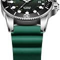Мужские механические часы с автоподзаводом Quantum BAR1115.375 — надёжный спортивный аксессуар с ярким дизайном и усиленной водозащитой. Корпус круглый, из нержавеющей стали, диаметром 44 мм. Циферблат — зелёный с окошком даты. Стекло — сапфировоеСапфировое стеклоПрочный и надёжный материал из кристалла сапфира синтетического происхождения, характеризующийся особой твёрдостью и устойчивостью к царапинам и повреждениям.. Механизм — японский автоматический Citizen с функцией автоподзавода. Водонепроницаемость 200 м. Ремешок — зелёный силиконовый «гармошка» на стандартной застёжке. Идеальный выбор для тех, кто ценит турецкий дизайн и высокую функциональность.