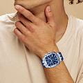 Мужские кварцевые часы Quantum из коллекции Hunter — крупные прямоугольные часы с ярким синим акцентом и функциональным хронографом. Корпус прямоугольный, из нержавеющей стали, размером 44 мм. БезельБезельВнешний ободок, закрепляющий стекло. В спортивных часах так называется поворотное кольцо с делениями на циферблате, выполняет роль таймера – замеряет отрезки времени на шкале. Неподвижный безель – элемент декора. Однонаправленно вращающийся безель на дайверских часах позволяет фиксировать моменты погружения и выныривания на поверхность. из нержавеющей стали с частичным PVD-покрытиемPVDУльтратонкое покрытие наносится в технике вакуумного напыления, сочетает в себе нитрид титана особой прочности со слоем золота или оксида хрома. Несёт в себе декоративную или защитную функцию.. Циферблат — синий с функциями хронографаХронографФункция позволяет измерять отрезки времени с особой точностью: часы, минуты, секунды. Верным признаком хронографа является наличие на циферблате 3 дополнительных окошек-счётчиков. и окошком даты. Стекло — минеральноеМинеральное стеклоМинеральное стекло представляет собой искусственно выращенный минерал кварца. Такое стекло отличается особой устойчивостью к повреждениям и царапинам. Уступает по некоторым качествам сапфировому стеклу. с антибликовым покрытием. Механизм — японский кварцевый Seiko. Водонепроницаемость 100 м. Ремешок — синий силиконовый на стандартной застёжке. Идеальный выбор для тех, кто ценит турецкий дизайн и спортивный стиль.
