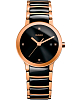Наручные часы представляют собой воплощение классики и лаконичного дизайна, это идеальный вариант для поддержания солидного имиджа. Они выполнены из нержавеющей стали и высокотехнологичной керамикиВысокотехнологичная керамикаИнновационный запатентованный Rado материал с гладкой или матовой поверхностью. Керамика за счёт кристаллической структуры обладает повышенной устойчивостью от возникновения царапин. Материал способен принимать температуру тела человека, обеспечивая невероятный комфорт при ношении., чёрные вставки привлекательно смотрятся. Минималистичный циферблат инкрустирован 4 бриллиантами в 0,009 карат. Кварцевый калибр ETA 956.112 с высокой точностью хода. Золотистое PVD-покрытиеPVDУльтратонкое покрытие наносится в технике вакуумного напыления, сочетает в себе нитрид титана особой прочности со слоем золота или оксида хрома. Несёт в себе декоративную или защитную функцию.. Сапфировое стекло противостоит образованию царапин на поверхности. Диаметр корпуса: 28 мм.