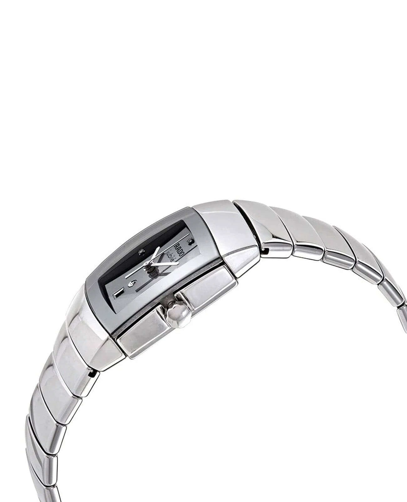 Швейцарские женские механические часы с автоподзаводом Rado Sintra R13855702. Сапфировое стеклоСапфировое стеклоПрочный и надёжный материал из кристалла сапфира синтетического происхождения, характеризующийся особой твёрдостью и устойчивостью к царапинам и повреждениям. устойчивое к мелким механическим повреждениям. Корпус часов изготовлен из высокотехнологичной керамикиВысокотехнологичная плазменная керамикаИнновационный материал, технология запатентована. Выплавление керамики осуществляется в печи при 20 000 °C, белоснежный материал под воздействием ультравысокой температуры приобретает уникальный блеск, присущий металлам.. Циферблат украшен бриллиантами. Окошко даты находится в положении 6 часов. Класс водозащиты: 30 метров, позволит защитить корпус от случайных брызг или капель дождя. Браслет из высокотехнологичной керамикиВысокотехнологичная плазменная керамикаИнновационный материал, технология запатентована. Выплавление керамики осуществляется в печи при 20 000 °C, белоснежный материал под воздействием ультравысокой температуры приобретает уникальный блеск, присущий металлам. на раскладной застёжкеРаскладная застёжкаТакой тип застёжки используется только на браслетах из металла. Она никогда не раскрывается полностью, происходит разделение на 2 и более частей. Раскладывающая застёжка снизит вероятность потери часов к минимуму..