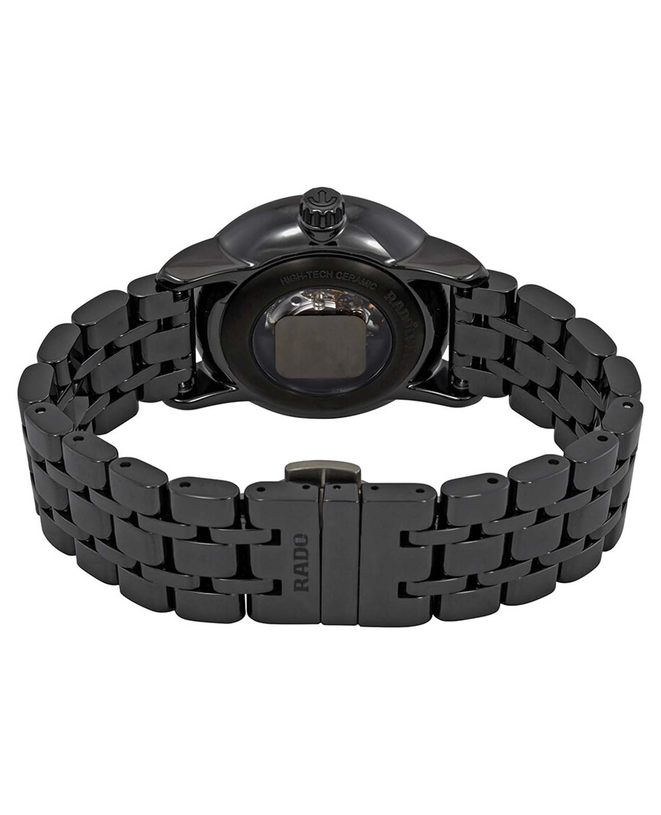 Женские швейцарские механические часы с автоподзаводом Rado Diamaster R14043717. Сапфировое стеклоСапфировое стеклоПрочный и надёжный материал из кристалла сапфира синтетического происхождения, характеризующийся особой твёрдостью и устойчивостью к царапинам и повреждениям. устойчивое к мелким механическим повреждениям. Корпус часов изготовлен из титана и высокотехнологичной керамикиВысокотехнологичная керамикаИнновационный запатентованный Rado материал с гладкой или матовой поверхностью. Керамика за счёт кристаллической структуры обладает повышенной устойчивостью от возникновения царапин. Материал способен принимать температуру тела человека, обеспечивая невероятный комфорт при ношении.. Окошко даты находится в положении 6 часов. Циферблат укаршен бриллиантами. Класс водозащиты: 50 метров, позволит защитить корпус от случайных брызг или капель дождя. Браслет из титана и высокотехнологичной керамикиВысокотехнологичная керамикаИнновационный запатентованный Rado материал с гладкой или матовой поверхностью. Керамика за счёт кристаллической структуры обладает повышенной устойчивостью от возникновения царапин. Материал способен принимать температуру тела человека, обеспечивая невероятный комфорт при ношении. на раскладной застёжкеРаскладная застёжкаТакой тип застёжки используется только на браслетах из металла. Она никогда не раскрывается полностью, происходит разделение на 2 и более частей. Раскладывающая застёжка снизит вероятность потери часов к минимуму..