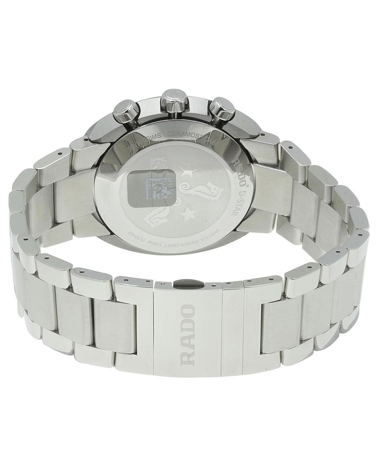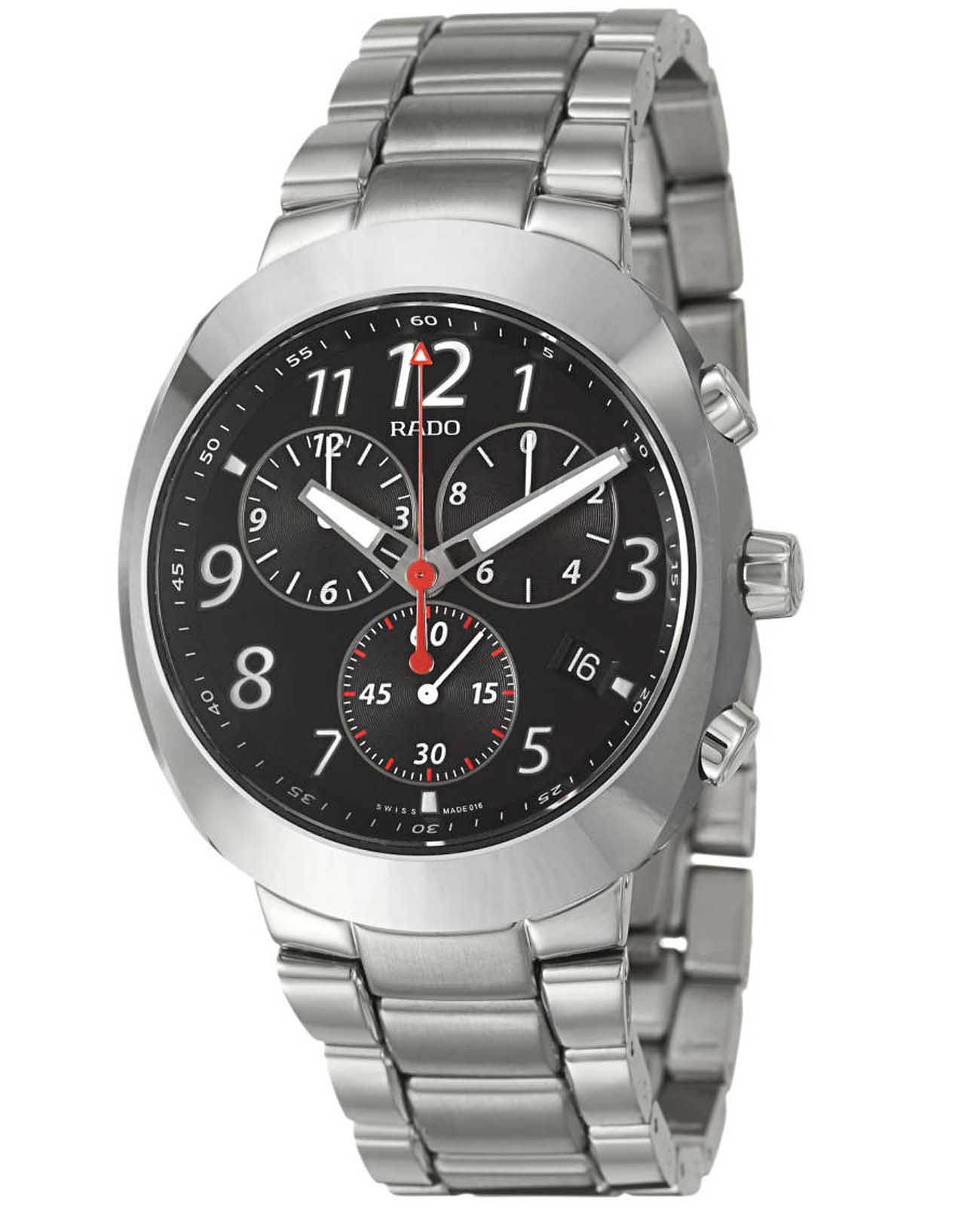 Мужские швейцарские часы-хронографХронографФункция позволяет измерять отрезки времени с особой точностью: часы, минуты, секунды. Верным признаком хронографа является наличие на циферблате 3 дополнительных окошек-счётчиков. Rado D-Star Chronograph R15937163. Сапфировое стеклоСапфировое стеклоПрочный и надёжный материал из кристалла сапфира синтетического происхождения, характеризующийся особой твёрдостью и устойчивостью к царапинам и повреждениям. устойчивое к мелким механическим повреждениям. Корпус часов изготовлен из CeramosCeramosМатериал являет собой инновационное сочетание высокотехнологичной керамики и сплава металла. Он объединяет керамическую устойчивость к царапинам и металлический роскошный блеск. . Окошко даты находится в положении 3 часа. Класс водозащиты: 100 метров, позволит плавать, нырять и заниматься другими водными видами спорт. Браслет из нержавеющей стали на раскладной застёжкеРаскладная застёжкаТакой тип застёжки используется только на браслетах из металла. Она никогда не раскрывается полностью, происходит разделение на 2 и более частей. Раскладывающая застёжка снизит вероятность потери часов к минимуму..