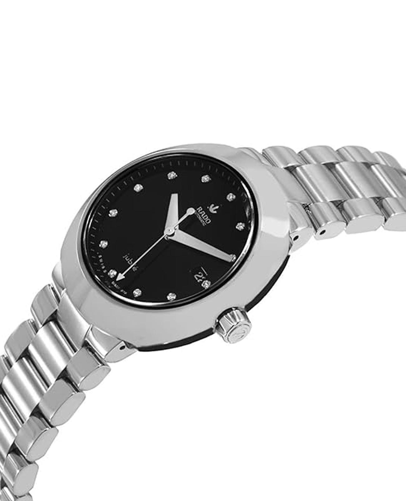 Женские механические швейцарские часы с автоподзаводом Rado D-Star R15947703. Сапфировое стеклоСапфировое стеклоПрочный и надёжный материал из кристалла сапфира синтетического происхождения, характеризующийся особой твёрдостью и устойчивостью к царапинам и повреждениям. устойчивое к мелким механическим повреждениям. Корпус часов изготовлен из CeramosCeramosМатериал являет собой инновационное сочетание высокотехнологичной керамики и сплава металла. Он объединяет керамическую устойчивость к царапинам и металлический роскошный блеск. . Циферблат украшен бриллиантами. Окошко даты находится в положении 3 часа. Класс водозащиты: 100 метров, позволит плавать, нырять и заниматься другими водными видами спорт. Браслет нержавеющей стали на раскладной застёжкеРаскладная застёжкаТакой тип застёжки используется только на браслетах из металла. Она никогда не раскрывается полностью, происходит разделение на 2 и более частей. Раскладывающая застёжка снизит вероятность потери часов к минимуму..