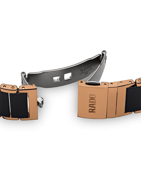 Премиальный аксессуар в чёрно-золотистом исполнении сочетается с любой одеждой, привлекая к вам всё внимание окружающих. Главным материалом для изготовления модели стала высокотехнологичная керамикаВысокотехнологичная керамикаИнновационный запатентованный Rado материал с гладкой или матовой поверхностью. Керамика за счёт кристаллической структуры обладает повышенной устойчивостью от возникновения царапин. Материал способен принимать температуру тела человека, обеспечивая невероятный комфорт при ношении., отличающаяся устойчивостью к царапинам и комфортабельностью. Кварцевый швейцарский калибр ETA 976.001. Нержавеющая сталь 316L с защитным PVD-покрытиемPVDУльтратонкое покрытие наносится в технике вакуумного напыления, сочетает в себе нитрид титана особой прочности со слоем золота или оксида хрома. Несёт в себе декоративную или защитную функцию.. Сапфировое стекло. Водозащита 5 бар. Безопасная . Габариты: 33,1 x 22,7 x 6,5 мм.