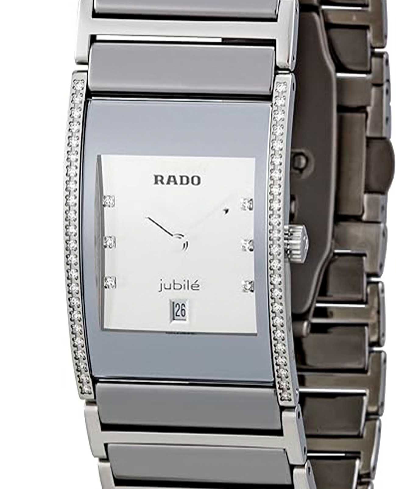 Женские часы Rado Integral Diamonds R20732712 с надёжным кварцевым механизмом. Сапфировое стеклоСапфировое стеклоПрочный и надёжный материал из кристалла сапфира синтетического происхождения, характеризующийся особой твёрдостью и устойчивостью к царапинам и повреждениям. устойчивое к мелким механическим повреждениям. Корпус выполнен из нержавеющей стали. Класс водозащиты: 30 метров, позволит защитить корпус от случайных брызг или капель дождя. Стальной браслет с CeramosCeramosМатериал являет собой инновационное сочетание высокотехнологичной керамики и сплава металла. Он объединяет керамическую устойчивость к царапинам и металлический роскошный блеск. на раскладной застёжкеРаскладная застёжкаТакой тип застёжки используется только на браслетах из металла. Она никогда не раскрывается полностью, происходит разделение на 2 и более частей. Раскладывающая застёжка снизит вероятность потери часов к минимуму.. Часы украшены бриллиантами.