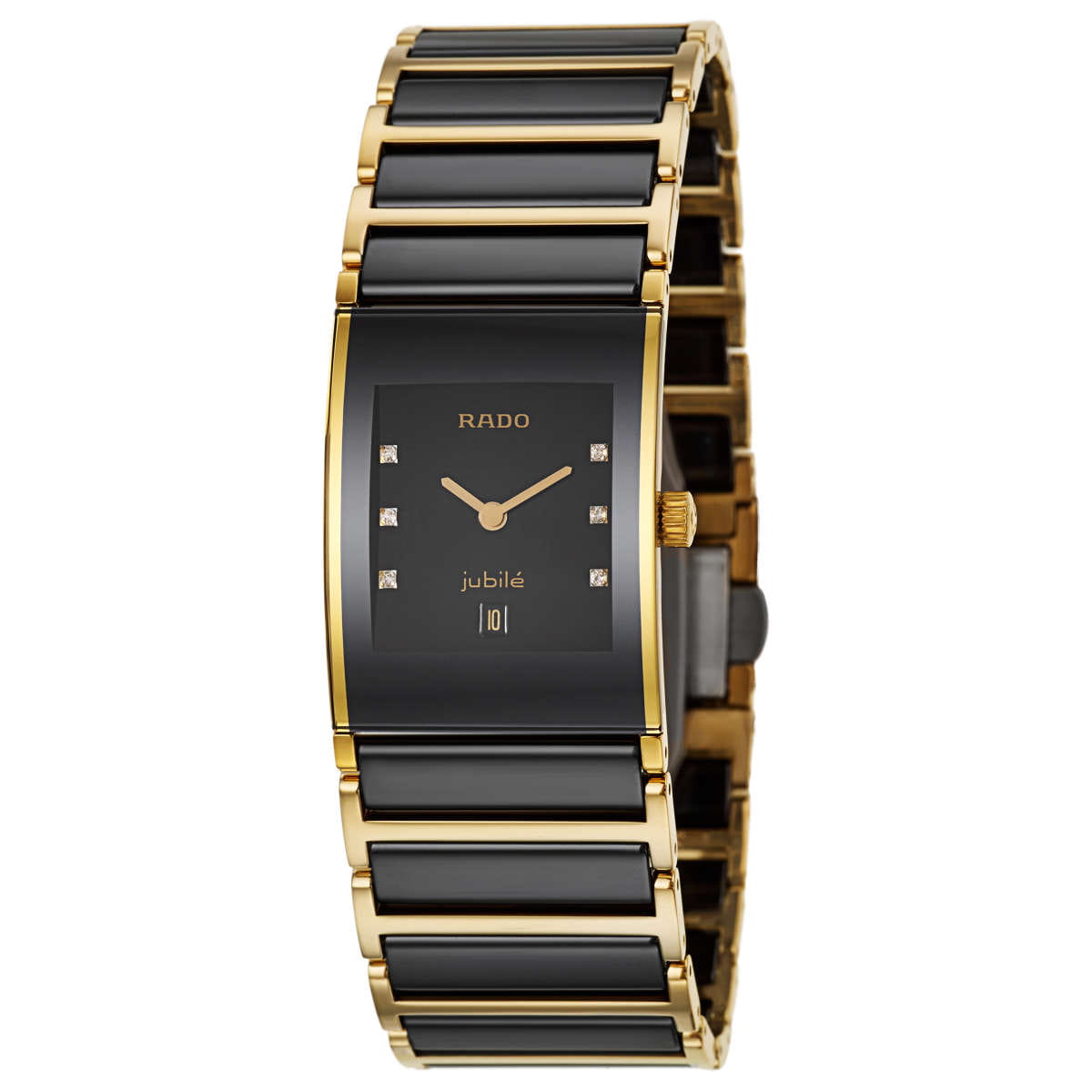Женские часы Rado Integral R20788752 с надёжным кварцевым механизмом. Сапфировое стеклоСапфировое стеклоПрочный и надёжный материал из кристалла сапфира синтетического происхождения, характеризующийся особой твёрдостью и устойчивостью к царапинам и повреждениям. устойчивое к мелким механическим повреждениям. Корпус выполнен из нержавеющей стали с PVD-покрытиемPVDУльтратонкое покрытие наносится в технике вакуумного напыления, сочетает в себе нитрид титана особой прочности со слоем золота или оксида хрома. Несёт в себе декоративную или защитную функцию.. Класс водозащиты: 30 метров, позволит защитить корпус от случайных брызг или капель дождя. Циферблат декорирован 6 бриллиантами. Стальной браслет с PVD-покрытиемPVDУльтратонкое покрытие наносится в технике вакуумного напыления, сочетает в себе нитрид титана особой прочности со слоем золота или оксида хрома. Несёт в себе декоративную или защитную функцию. с вставками из высокотехнологичной керамикиВысокотехнологичная керамикаИнновационный запатентованный Rado материал с гладкой или матовой поверхностью. Керамика за счёт кристаллической структуры обладает повышенной устойчивостью от возникновения царапин. Материал способен принимать температуру тела человека, обеспечивая невероятный комфорт при ношении. на раскладной застёжкеРаскладная застёжкаТакой тип застёжки используется только на браслетах из металла. Она никогда не раскрывается полностью, происходит разделение на 2 и более частей. Раскладывающая застёжка снизит вероятность потери часов к минимуму.. Отображение даты в положении «6 часов».