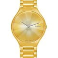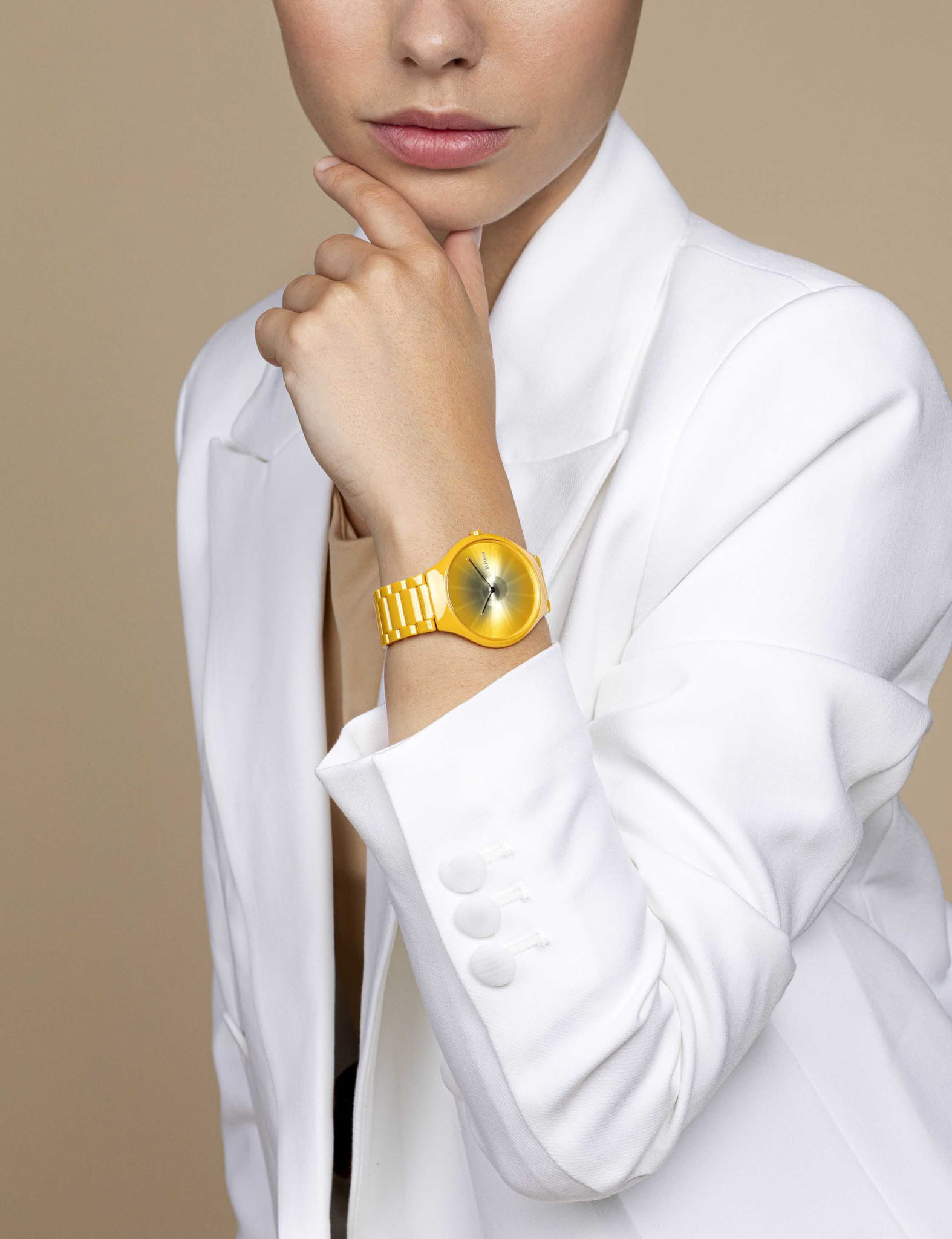 The True Thinline x Great Gardens of the World Глава 5 (Лето) - это беззастенчивое празднование лета в ликующем духе. 39-миллиметровый моноблочный высокотехнологичный керамическийВысокотехнологичная керамикаИнновационный запатентованный Rado материал с гладкой или матовой поверхностью. Керамика за счёт кристаллической структуры обладает повышенной устойчивостью от возникновения царапин. Материал способен принимать температуру тела человека, обеспечивая невероятный комфорт при ношении. корпус желтого цвета дополнен циферблатом с серебристо-желтым солнечным градиентом за сапфировым стекломСапфировое стеклоПрочный и надёжный материал из кристалла сапфира синтетического происхождения, характеризующийся особой твёрдостью и устойчивостью к царапинам и повреждениям. с солнечной гранью. Заводная головка и браслет также выполнены из высокотехнологичной керамики, на этот раз в солнечно-желтом цвете в тон корпусу и выступу циферблата. Благодаря кварцевому механизму Rado R420 модель показывает точное время с помощью дисплея с двумя стрелками и 13 драгоценных камней. Серия Four Seasons также доступна в красивой коллекционной коробке, выпущенной ограниченным тиражом (150 экземпляров), в которой хранятся все четыре модели.