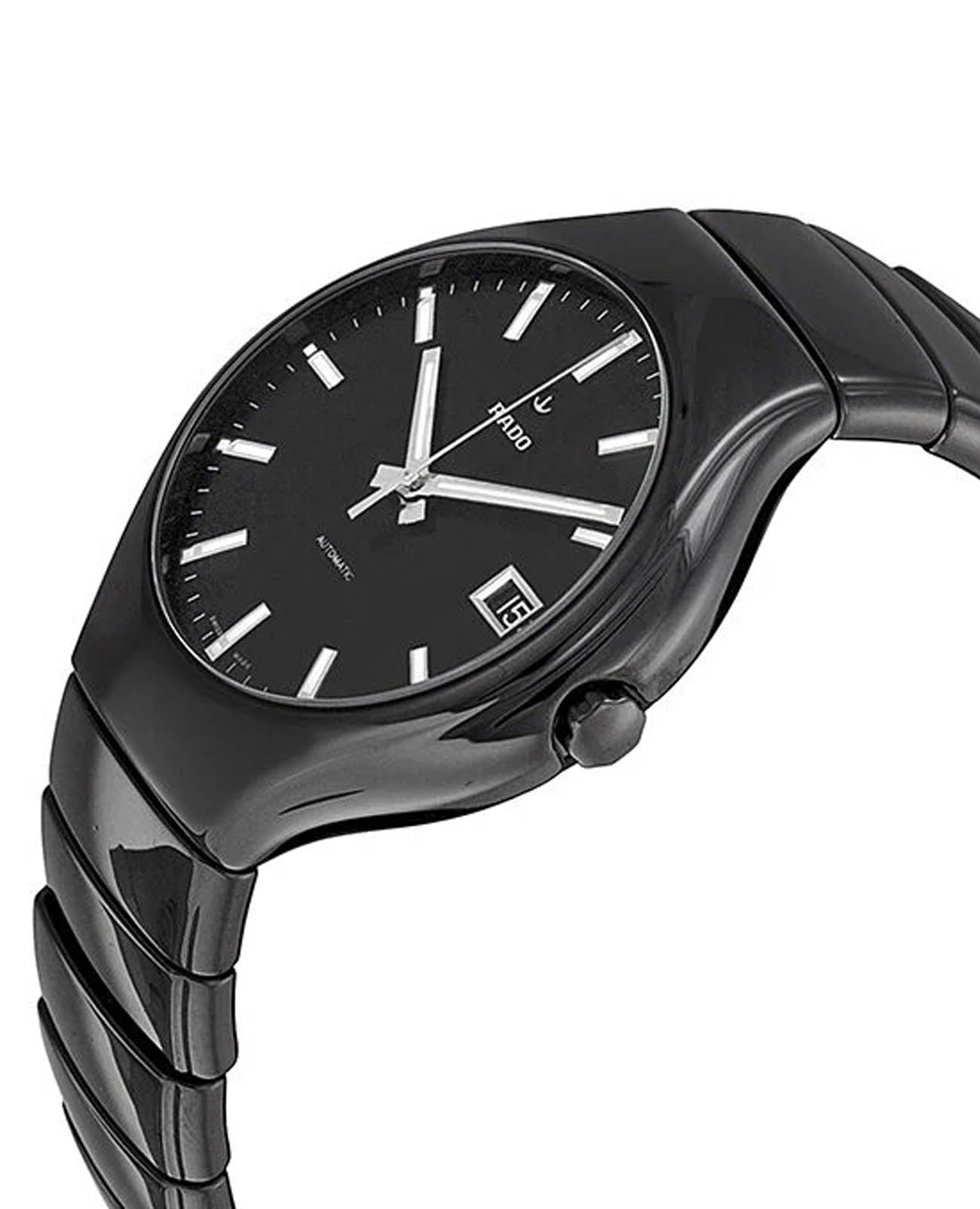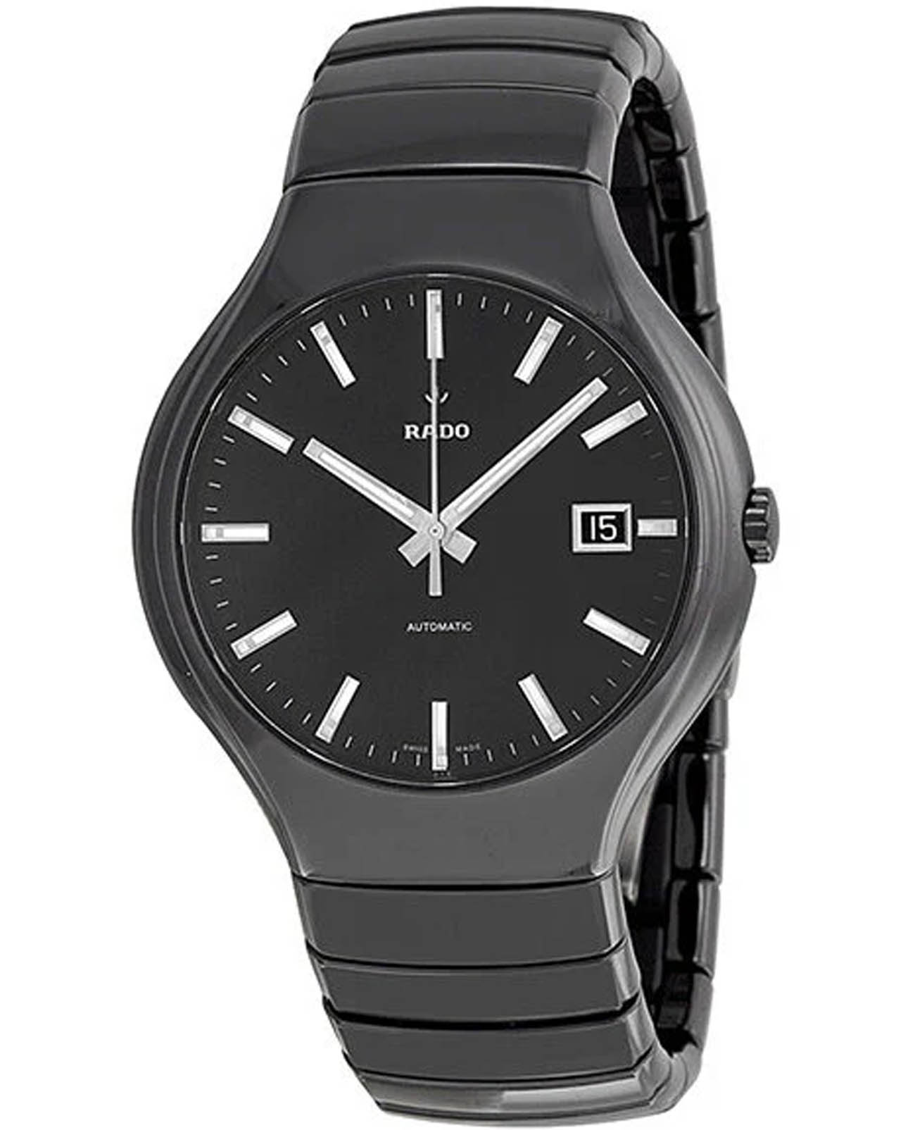 Мужские механические швейцарские часы с автоподзаводом Rado True Automatic R27857162. Сапфировое стеклоСапфировое стеклоПрочный и надёжный материал из кристалла сапфира синтетического происхождения, характеризующийся особой твёрдостью и устойчивостью к царапинам и повреждениям. устойчивое к мелким механическим повреждениям. Корпус часов изготовлен из высокотехнологичной керамикиВысокотехнологичная керамикаИнновационный запатентованный Rado материал с гладкой или матовой поверхностью. Керамика за счёт кристаллической структуры обладает повышенной устойчивостью от возникновения царапин. Материал способен принимать температуру тела человека, обеспечивая невероятный комфорт при ношении.. Окошко даты находится в положении 3 часа. Стрелки с люминесцентным покрытиемЛюминесцентное покрытиеПозволяет считывать показания времени в темноте. Производители наносят на стрелки, часовые индексы, безель или поверхность циферблата светонакопительный состав, дающий холодное свечение.. Класс водозащиты: 30 метров, позволит защитить корпус от случайных брызг или капель дождя. Браслет из высокотехнологичной керамикиВысокотехнологичная керамикаИнновационный запатентованный Rado материал с гладкой или матовой поверхностью. Керамика за счёт кристаллической структуры обладает повышенной устойчивостью от возникновения царапин. Материал способен принимать температуру тела человека, обеспечивая невероятный комфорт при ношении. на застёжке «бабочка» с кнопкамиЗастёжка "бабочка"Такой вид застёжки дополняется предохранителями, помогающими избежать случайного раскрытия браслета. Обладают изящным исполнением.