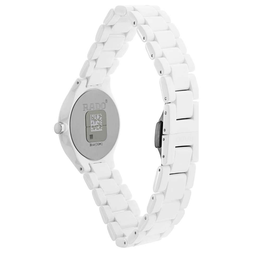 Швейцарские женские Rado True Thinline R27958112, кварцевый механизм с высокой точностью. Сапфировое стеклоСапфировое стеклоПрочный и надёжный материал из кристалла сапфира синтетического происхождения, характеризующийся особой твёрдостью и устойчивостью к царапинам и повреждениям. устойчивое к появлению царапин, обладающее высокой прозрачностью. Корпус часов изготовлен из высокотехнологичной керамикиВысокотехнологичная керамикаИнновационный запатентованный Rado материал с гладкой или матовой поверхностью. Керамика за счёт кристаллической структуры обладает повышенной устойчивостью от возникновения царапин. Материал способен принимать температуру тела человека, обеспечивая невероятный комфорт при ношении.. Класс водозащиты: 30 метров, позволит защитить корпус от случайных брызг или капель дождя. Керамический браслет на застёжке-бабочке с кнопкамиЗастёжка "бабочка"Такой вид застёжки дополняется предохранителями, помогающими избежать случайного раскрытия браслета. Обладают изящным исполнением. .