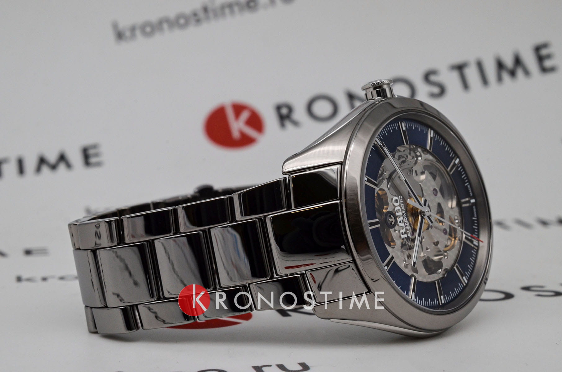 Мужские механические швейцарские часы-скелетоны Rado Hyperchrome Automatic R32020202. Сапфировое стеклоСапфировое стеклоПрочный и надёжный материал из кристалла сапфира синтетического происхождения, характеризующийся особой твёрдостью и устойчивостью к царапинам и повреждениям. устойчивое к мелким механическим повреждениям. Корпус часов изготовлен из нержавеющей стали. Скелетонизированный циферблат. Стрелки с люминесцентным покрытиемЛюминесцентное покрытиеПозволяет считывать показания времени в темноте. Производители наносят на стрелки, часовые индексы, безель или поверхность циферблата светонакопительный состав, дающий холодное свечение.. Класс водозащиты: 50 метров, позволит защитить корпус от случайных брызг или капель дождя. Стальной браслет на раскладной застёжкеРаскладная застёжкаТакой тип застёжки используется только на браслетах из металла. Она никогда не раскрывается полностью, происходит разделение на 2 и более частей. Раскладывающая застёжка снизит вероятность потери часов к минимуму..