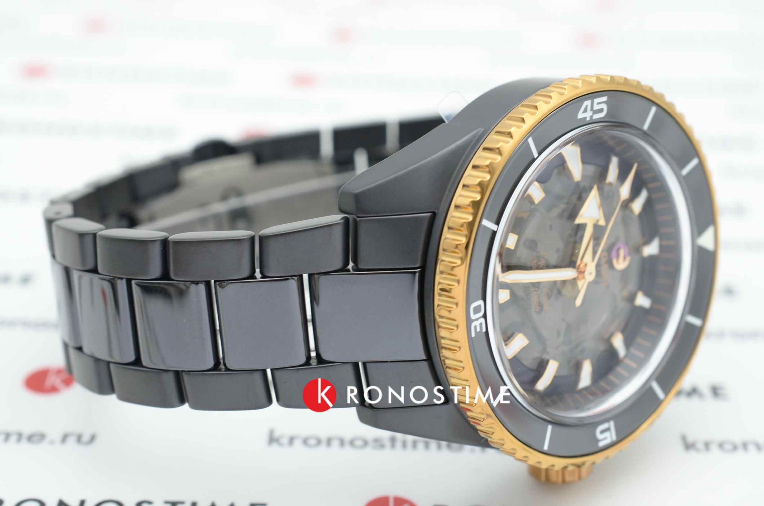 Премиальная модель обладает винтажным характером, чёрный циферблат обращает наше внимание на оригинальные стрелки в виде меча и стрелы. Часы обладают высокими показателями водонепроницаемости - сохранение герметичности до 20 бар, что стало возможным благодаря завинчивающейся задней крышке и заводной головке. Автоподзавод. Антибликовая обработка сапфирового стекла. Корпус из керамики, безельБезельВнешний ободок, закрепляющий стекло. В спортивных часах так называется поворотное кольцо с делениями на циферблате, выполняет роль таймера – замеряет отрезки времени на шкале. Неподвижный безель – элемент декора. Однонаправленно вращающийся безель на дайверских часах позволяет фиксировать моменты погружения и выныривания на поверхность. из высокотехнологичной керамикиВысокотехнологичная керамикаИнновационный запатентованный Rado материал с гладкой или матовой поверхностью. Керамика за счёт кристаллической структуры обладает повышенной устойчивостью от возникновения царапин. Материал способен принимать температуру тела человека, обеспечивая невероятный комфорт при ношении.. Прочный керамический браслет. Отображение числа. Диаметр корпуса: 43 мм.