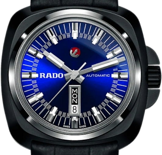 Брендовая модель стала гармоничным воплощением настоящего и прошлого, взяв только самое лучшее. Оригинальный массивный корпус с необычными элементами станет превосходным дополнением к дорогому классическому костюму. Швейцарский автоматический калибр ETA C07.621 с увеличенным резервом хода до 80 часов. Винтажный ремешок из натуральной кожи. Корпус из высокотехнологичной керамикиВысокотехнологичная керамикаИнновационный запатентованный Rado материал с гладкой или матовой поверхностью. Керамика за счёт кристаллической структуры обладает повышенной устойчивостью от возникновения царапин. Материал способен принимать температуру тела человека, обеспечивая невероятный комфорт при ношении.. Сапфировое стеклоСапфировое стеклоПрочный и надёжный материал из кристалла сапфира синтетического происхождения, характеризующийся особой твёрдостью и устойчивостью к царапинам и повреждениям. с антибликовой обработкой. Люминесцентная подсветкаЛюминесцентное покрытиеПозволяет считывать показания времени в темноте. Производители наносят на стрелки, часовые индексы, безель или поверхность циферблата светонакопительный состав, дающий холодное свечение.. Водозащита 100 метров, позволит плавать, нырять и заниматься другими водными видами спорта. Раскладная застёжкаРаскладная застёжкаТакой тип застёжки используется только на браслетах из металла. Она никогда не раскрывается полностью, происходит разделение на 2 и более частей. Раскладывающая застёжка снизит вероятность потери часов к минимуму.. Апертура даты и дня недели. Диаметр корпуса: 46 мм. Безель с черным PVD покрытием.