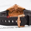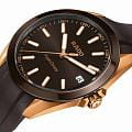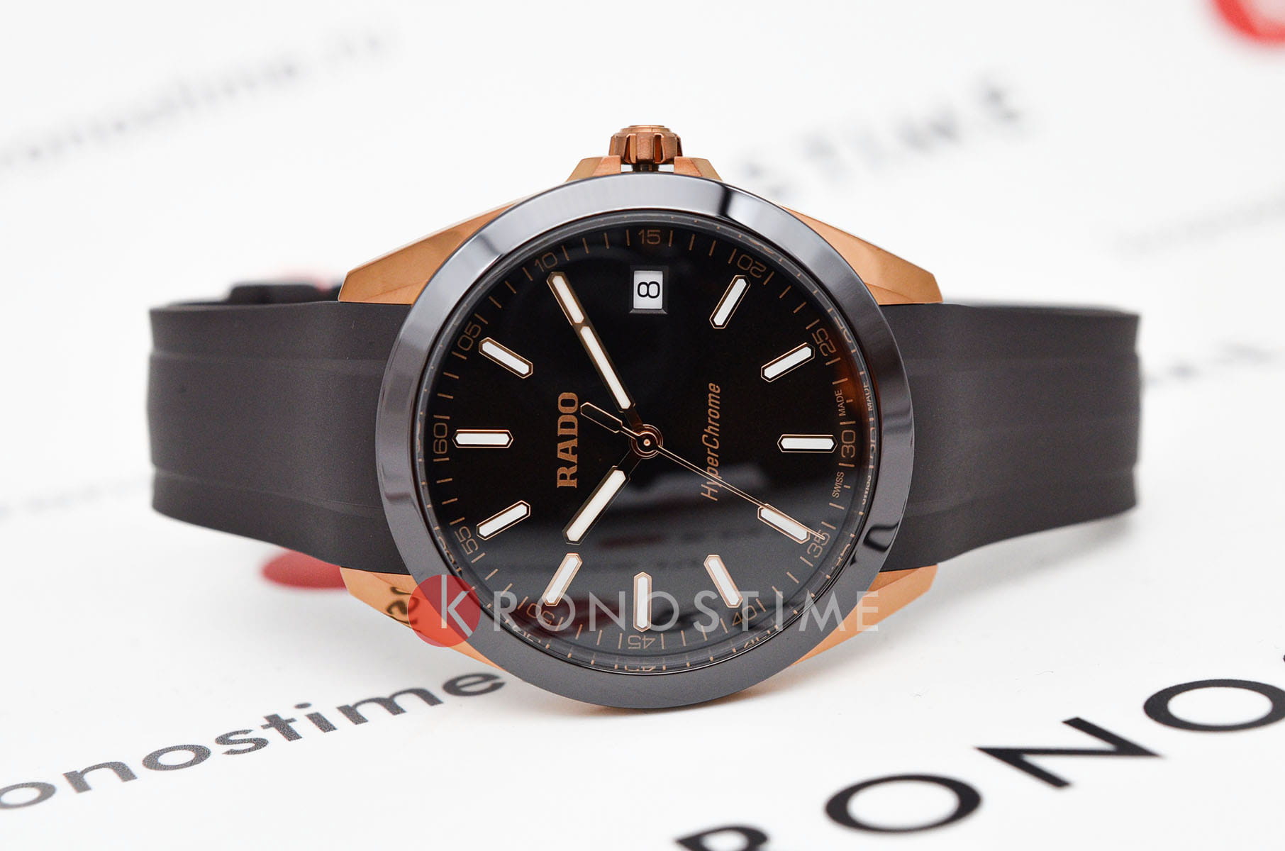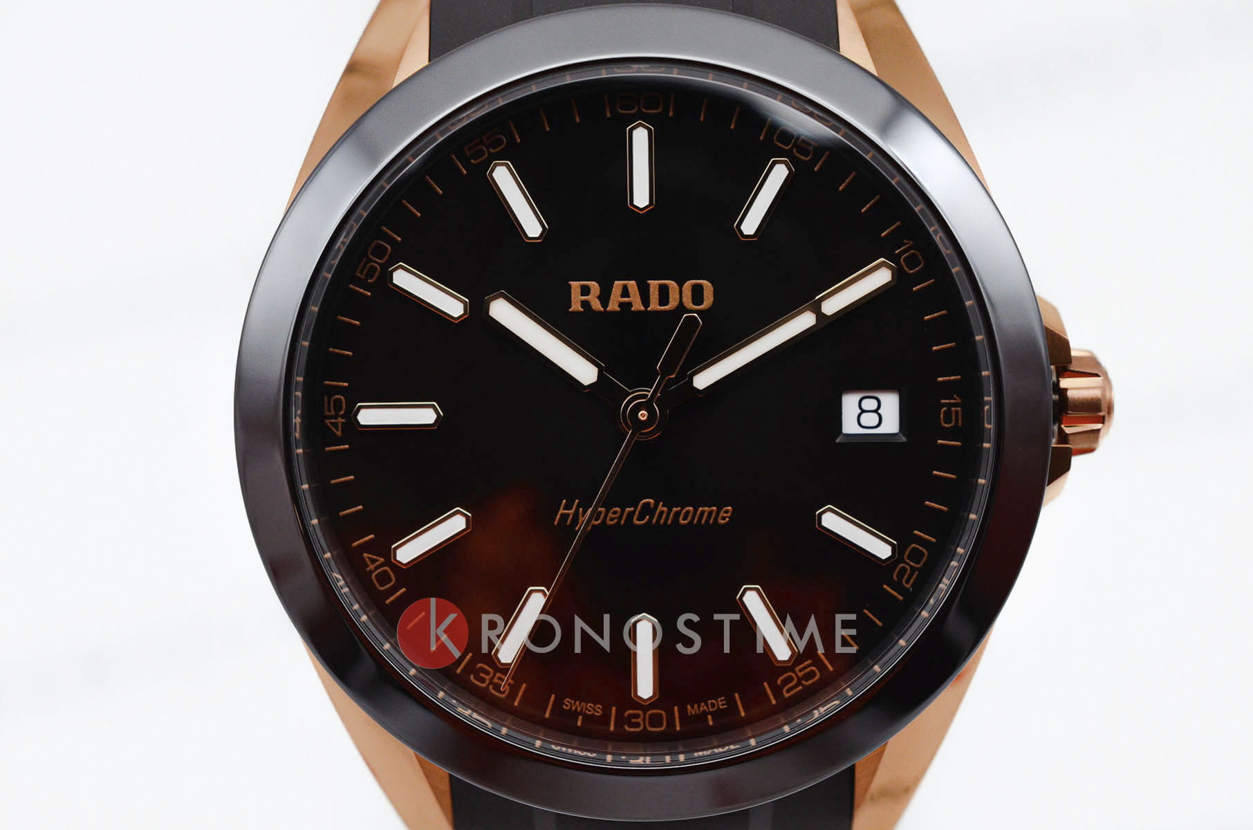 Мужские кварцевые часы Rado HyperChrome — это современное воплощение точности и мастерства материалов. Корпус диаметром 41,5 мм и толщиной 11,7 мм выполнен из нержавеющей стали с PVD-покрытиемPVDУльтратонкое покрытие наносится в технике вакуумного напыления, сочетает в себе нитрид титана особой прочности со слоем золота или оксида хрома. Несёт в себе декоративную или защитную функцию. розового золота, полированной и матовой. БезельБезельВнешний ободок, закрепляющий стекло. В спортивных часах так называется поворотное кольцо с делениями на циферблате, выполняет роль таймера – замеряет отрезки времени на шкале. Неподвижный безель – элемент декора. Однонаправленно вращающийся безель на дайверских часах позволяет фиксировать моменты погружения и выныривания на поверхность. изготовлен из высокотехнологичной керамикиВысокотехнологичная керамикаИнновационный запатентованный Rado материал с гладкой или матовой поверхностью. Керамика за счёт кристаллической структуры обладает повышенной устойчивостью от возникновения царапин. Материал способен принимать температуру тела человека, обеспечивая невероятный комфорт при ношении. коричневого цвета, придающей часам прочность и изысканность. Циферблат коричневого цвета с эффектом «солнечные лучи» оформлен накладными индексами и стрелками розового золота с люминесцентным покрытиемЛюминесцентное покрытиеПозволяет считывать показания времени в темноте. Производители наносят на стрелки, часовые индексы, безель или поверхность циферблата светонакопительный состав, дающий холодное свечение. Super-Luminova®. Особенность подсветки — зелёное свечение метки 12 часов и минутной стрелки, и синее — остальных индексов и часовой стрелки, что обеспечивает интуитивное считывание времени в темноте. Циферблат защищён выпуклым сапфировым стекломСапфировое стеклоПрочный и надёжный материал из кристалла сапфира синтетического происхождения, характеризующийся особой твёрдостью и устойчивостью к царапинам и повреждениям. с антибликовым покрытиемАнтибликовое покрытиеСлой оксида металла в 0,13-0,3 микрон, благодаря которому стекло часов не бликует и не отражает свет. Антибликовое покрытие уменьшает отражение света в 10 раз, обеспечивая отличную читаемость показателей циферблата. на внутренней стороне. Механизм — кварцевый. Окошко даты расположено в положении 3 часов. Часы оснащены каучуковым ремешком коричневого цвета с пряжкой из нержавеющей стали с PVD-покрытиемPVDУльтратонкое покрытие наносится в технике вакуумного напыления, сочетает в себе нитрид титана особой прочности со слоем золота или оксида хрома. Несёт в себе декоративную или защитную функцию. розового золота. Водонепроницаемость 150 м позволяет использовать часы для плавания и повседневного ношения. Идеальный выбор для тех, кто ценит инновации, точность и смелый дизайн.