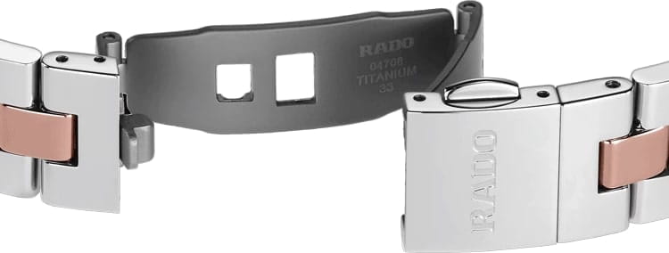Женские швейцарские часы с надёжным кварцевым механизмом Rado Hyperchrome R32976912. Сапфировое стеклоСапфировое стеклоПрочный и надёжный материал из кристалла сапфира синтетического происхождения, характеризующийся особой твёрдостью и устойчивостью к царапинам и повреждениям. устойчивое к мелким механическим повреждениям. Корпус часов изготовлены из нержавеющей стали. Стальной браслет с CeramosCeramosМатериал являет собой инновационное сочетание высокотехнологичной керамики и сплава металла. Он объединяет керамическую устойчивость к царапинам и металлический роскошный блеск. на раскладной застёжкеРаскладная застёжкаТакой тип застёжки используется только на браслетах из металла. Она никогда не раскрывается полностью, происходит разделение на 2 и более частей. Раскладывающая застёжка снизит вероятность потери часов к минимуму.. Окошко даты находится в положении 3 часа. Класс водозащиты: 50 метров, позволит защитить корпус от случайных брызг или капель дождя. БезельБезельВнешний ободок, закрепляющий стекло. В спортивных часах так называется поворотное кольцо с делениями на циферблате, выполняет роль таймера – замеряет отрезки времени на шкале. Неподвижный безель – элемент декора. Однонаправленно вращающийся безель на дайверских часах позволяет фиксировать моменты погружения и выныривания на поверхность. с CeramosCeramosМатериал являет собой инновационное сочетание высокотехнологичной керамики и сплава металла. Он объединяет керамическую устойчивость к царапинам и металлический роскошный блеск. .
