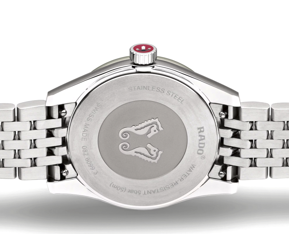 Женские швейцарские часы с надёжным кварцевым механизмом Rado Hyperchrome R33104923. Сапфировое стеклоСапфировое стеклоПрочный и надёжный материал из кристалла сапфира синтетического происхождения, характеризующийся особой твёрдостью и устойчивостью к царапинам и повреждениям. устойчивое к мелким механическим повреждениям. Корпус и браслет часов изготовлены из нержавеющей стали. Стальной браслет на раскладной застёжкеРаскладная застёжкаТакой тип застёжки используется только на браслетах из металла. Она никогда не раскрывается полностью, происходит разделение на 2 и более частей. Раскладывающая застёжка снизит вероятность потери часов к минимуму.. Окошко даты находится в положении 3 часа. Класс водозащиты: 50 метров, позволит защитить корпус от случайных брызг или капель дождя. Циферблат инкрустирован бриллиантами. БезельБезельВнешний ободок, закрепляющий стекло. В спортивных часах так называется поворотное кольцо с делениями на циферблате, выполняет роль таймера – замеряет отрезки времени на шкале. Неподвижный безель – элемент декора. Однонаправленно вращающийся безель на дайверских часах позволяет фиксировать моменты погружения и выныривания на поверхность. из высокотехнологичной плазменной керамикиВысокотехнологичная плазменная керамикаИнновационный материал, технология запатентована. Выплавление керамики осуществляется в печи при 20 000 °C, белоснежный материал под воздействием ультравысокой температуры приобретает уникальный блеск, присущий металлам..