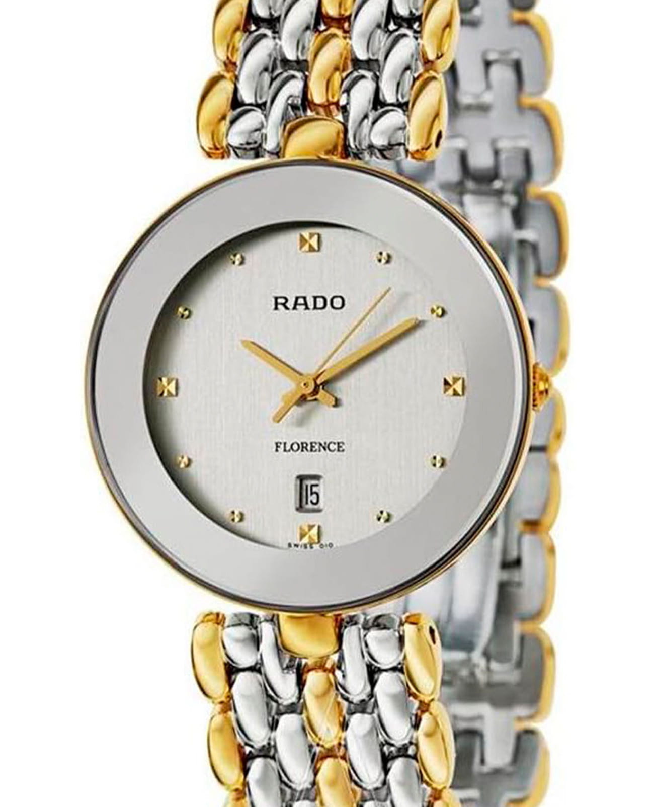 Мужские швейцарские кварцевые часы Rado Florence Rondo R48743103. Сапфировое стеклоСапфировое стеклоПрочный и надёжный материал из кристалла сапфира синтетического происхождения, характеризующийся особой твёрдостью и устойчивостью к царапинам и повреждениям. устойчивое к мелким механическим повреждениям. Стальной браслет на застёжке-бабочке с частичным PVD-покрытиемPVDУльтратонкое покрытие наносится в технике вакуумного напыления, сочетает в себе нитрид титана особой прочности со слоем золота или оксида хрома. Несёт в себе декоративную или защитную функцию.. Корпус часов изготовлен из нержавеющей стали с PVD-покрытиемPVDУльтратонкое покрытие наносится в технике вакуумного напыления, сочетает в себе нитрид титана особой прочности со слоем золота или оксида хрома. Несёт в себе декоративную или защитную функцию.. Окошко даты находится в положении 6 часов. Класс водозащиты: 30 метров, позволит защитить корпус от случайных брызг или капель дождя.