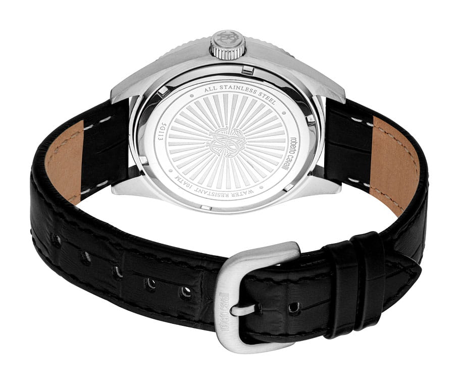 Погрузитесь в мир роскоши и безупречного стиля с мужскими наручными часами ROBERTO CAVALLI RC5G113L0015. Эти часы – воплощение смелого дизайна и итальянской элегантности, созданные для мужчины, который ценит внимание к деталям и не боится заявить о себе. Круглый корпус диаметром 40 мм выполнен из нержавеющей стали, толщина корпуса составляет 11 мм, что придает модели выразительный внешний вид и надежную защиту от внешних воздействий. Циферблат, искусно оформленный фирменными элементами Roberto Cavalli, притягивает взгляд и подчеркивает ваш безупречный вкус. Часы оснащены кварцевым механизмом, также обладают функцией отображения даты, что делает их удобными для ежедневного использования. Минеральное стеклоМинеральное стеклоМинеральное стекло представляет собой искусственно выращенный минерал кварца. Такое стекло отличается особой устойчивостью к повреждениям и царапинам. Уступает по некоторым качествам сапфировому стеклу. защищает часы от царапин. Водозащита 100 метров, позволит плавать, нырять и заниматься другими водными видами спорта. Кожаный ремешок на стандартной застёжке обеспечивает комфортное ношение. Рифленый безельБезельВнешний ободок, закрепляющий стекло. В спортивных часах так называется поворотное кольцо с делениями на циферблате, выполняет роль таймера – замеряет отрезки времени на шкале. Неподвижный безель – элемент декора. Однонаправленно вращающийся безель на дайверских часах позволяет фиксировать моменты погружения и выныривания на поверхность.. Стрелки с люминесцентным покрытиемЛюминесцентное покрытиеПозволяет считывать показания времени в темноте. Производители наносят на стрелки, часовые индексы, безель или поверхность циферблата светонакопительный состав, дающий холодное свечение. обеспечивают отличную читаемость в любое время суток.