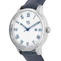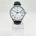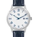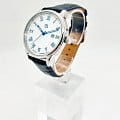 Стальной корпус круглой формы диаметром 42 мм и толщиной 10.1 мм выполнен из нержавеющей стали, что придает часам прочность и долговечность. Циферблат белого цвета с римскими цифрами и метками в виде штрихов надежно защищен закаленным минеральным стекломМинеральное стеклоМинеральное стекло представляет собой искусственно выращенный минерал кварца. Такое стекло отличается особой устойчивостью к повреждениям и царапинам. Уступает по некоторым качествам сапфировому стеклу., что предотвращает появление царапин и повреждений.