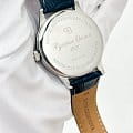 Кожаный ремешок шириной 20 мм помогает оптимально зафиксировать часы на вашей руке и является их грамотным дополнением. Материал ремешка экологически безопасен и полностью разрешен к использованию на территории любой страны. Вы не будете испытывать неудобств при ношении часов благодаря удобству и качеству материала.