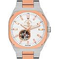 Мужские механические часы с автоподзаводом Santa Barbara Polo & Racquet Club — это сочетание практичности и сдержанного стиля. Корпус диаметром 40,5 мм выполнен из нержавеющей стали 316L. БезельБезельВнешний ободок, закрепляющий стекло. В спортивных часах так называется поворотное кольцо с делениями на циферблате, выполняет роль таймера – замеряет отрезки времени на шкале. Неподвижный безель – элемент декора. Однонаправленно вращающийся безель на дайверских часах позволяет фиксировать моменты погружения и выныривания на поверхность. с IP-покрытиемIP-покрытиеМетод ионного напыления. Демонстрирует повышенную устойчивость к истиранию, окислению и химическим веществам. Под воздействием высокого давления и температуры около 1500°C молекулы металла надёжно соединяются с частицами корпуса часов. розового золота, с матовой и полированной отделкой. Циферблат белого цвета фактурный, украшен фирменным логотипом и накладными метками в виде штрихов. Через прозрачное окошко на циферблате можно наблюдать за работой механизма. Стрелки прямоугольные, заострённые, в стиле Baton, с люминесцентным покрытиемЛюминесцентное покрытиеПозволяет считывать показания времени в темноте. Производители наносят на стрелки, часовые индексы, безель или поверхность циферблата светонакопительный состав, дающий холодное свечение., обеспечивающим хорошую читаемость в темноте. Циферблат защищён минеральным стеклом. Часы оснащены браслетом из стали с IP-покрытиемIP-покрытиеМетод ионного напыления. Демонстрирует повышенную устойчивость к истиранию, окислению и химическим веществам. Под воздействием высокого давления и температуры около 1500°C молекулы металла надёжно соединяются с частицами корпуса часов. на застёжке «бабочка» с кнопкамиЗастёжка "бабочка"Такой вид застёжки дополняется предохранителями, помогающими избежать случайного раскрытия браслета. Обладают изящным исполнением. . Водонепроницаемость 50 м позволяет использовать часы в повседневных условиях. Идеальный выбор для тех, кто ценит качество, надёжность и утончённый дизайн.