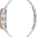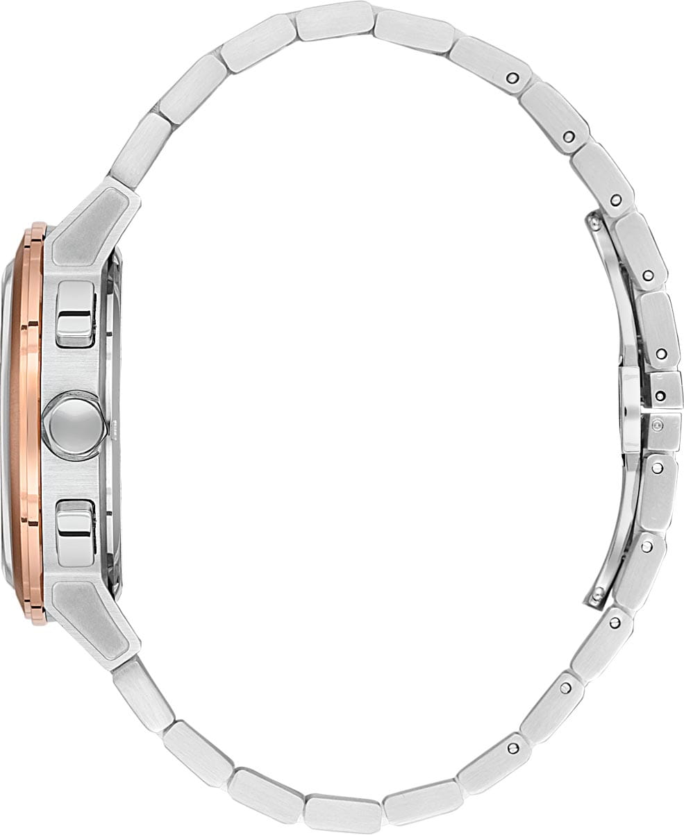 Циферблат с акцентными метками и стрелками оформлен в многослойной структуре и оснащён вспомогательными индикаторами хронографаХронографФункция позволяет измерять отрезки времени с особой точностью: часы, минуты, секунды. Верным признаком хронографа является наличие на циферблате 3 дополнительных окошек-счётчиков., включая 24-часовой формат, счётчик минут и секунд. В нижней части расположено окошко даты, что делает модель ещё более практичной.