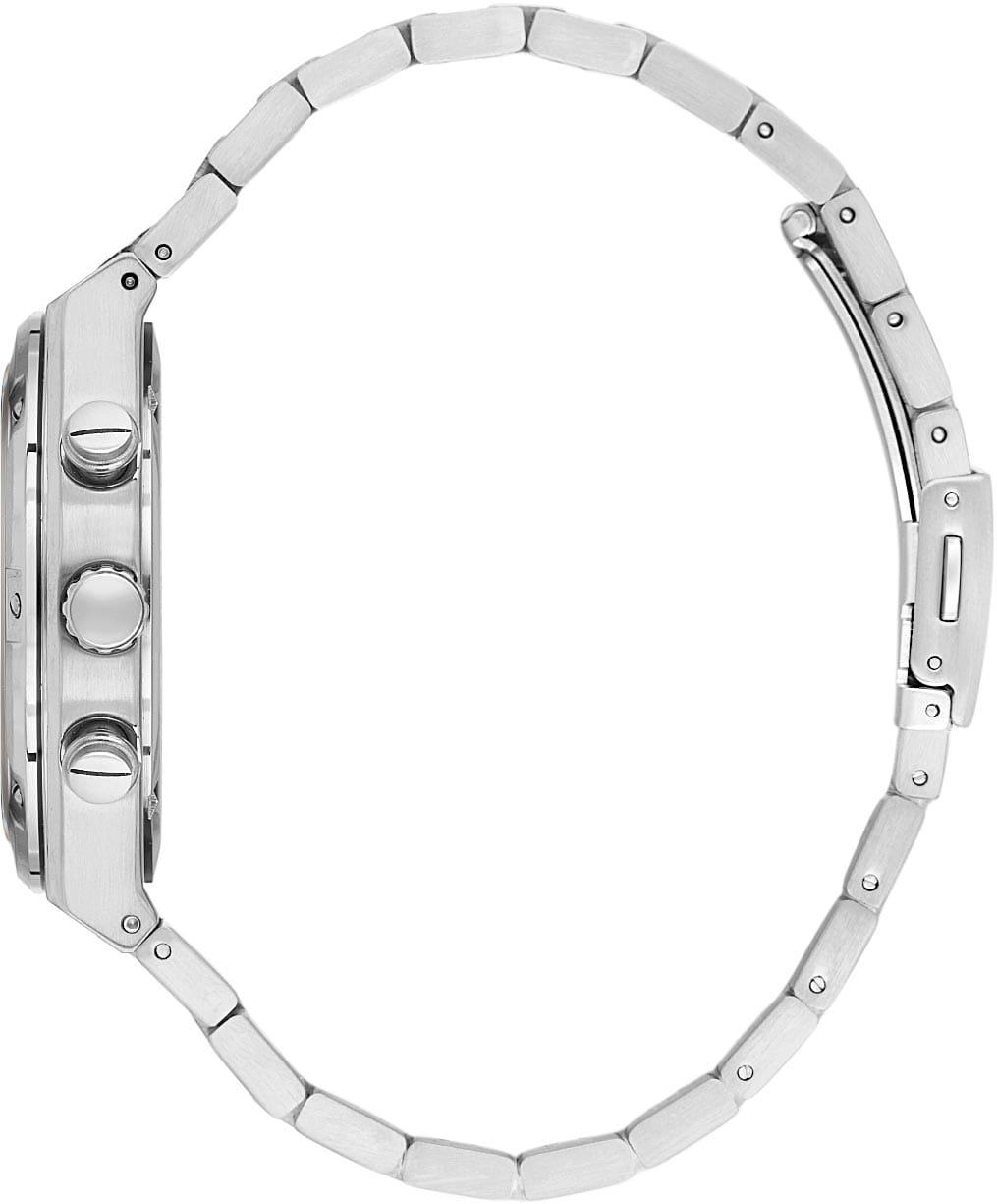 Santa Barbara Polo & Racquet Club Legend SB.1.10583-2 — стильные кварцевые мужские наручные часы-хронографХронографФункция позволяет измерять отрезки времени с особой точностью: часы, минуты, секунды. Верным признаком хронографа является наличие на циферблате 3 дополнительных окошек-счётчиков. с секундомеромСекундомерСекундоме́р — прибор, способный измерять интервалы времени с точностью до долей секунды., сочетающие спортивную динамику и функциональность. Крупный корпус выполнен из нержавеющей стали и гармонично дополнен стальным браслетом на раскладной застёжкеРаскладная застёжкаТакой тип застёжки используется только на браслетах из металла. Она никогда не раскрывается полностью, происходит разделение на 2 и более частей. Раскладывающая застёжка снизит вероятность потери часов к минимуму.. Циферблат с акцентными метками и стрелками с люминесцентным покрытиемЛюминесцентное покрытиеПозволяет считывать показания времени в темноте. Производители наносят на стрелки, часовые индексы, безель или поверхность циферблата светонакопительный состав, дающий холодное свечение. оформлен в многослойной структуре и оснащён вспомогательными индикаторами, включая 24-часовой формат времени. В нижней части расположено окошко даты, что делает модель ещё более практичной. Минеральное стеклоМинеральное стеклоМинеральное стекло представляет собой искусственно выращенный минерал кварца. Такое стекло отличается особой устойчивостью к повреждениям и царапинам. Уступает по некоторым качествам сапфировому стеклу. защищает циферблат от царапин, а кварцевый механизм обеспечивает высокую точность. Благодаря своей универсальной эстетике эти часы уместны и в деловой среде, и в повседневном образе.