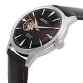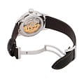 Циферблат привлекает лаконичным узором, крупная индикация времени обеспечивает идеальную читаемость данных. На позиции 9 часов размещено круглое окошко, позволяющее прикоснуться к миру часового искусства. Это часы с автоподзаводом, работа японского автоматического механизма Seiko 4R38 просматривается сквозь завинчивающуюся прозрачную заднюю крышку. Запас хода – 40 часов, функция «stop-second» позволяет остановить часовой механизм для настройки времени с точностью до секунды. Ремешок выполнен из натуральной кожи. Циферблат защищён ультрапрочным минеральным стеклом Hardlex. Водостойкость – 50 метров. Диаметр корпуса: 40,5 мм.