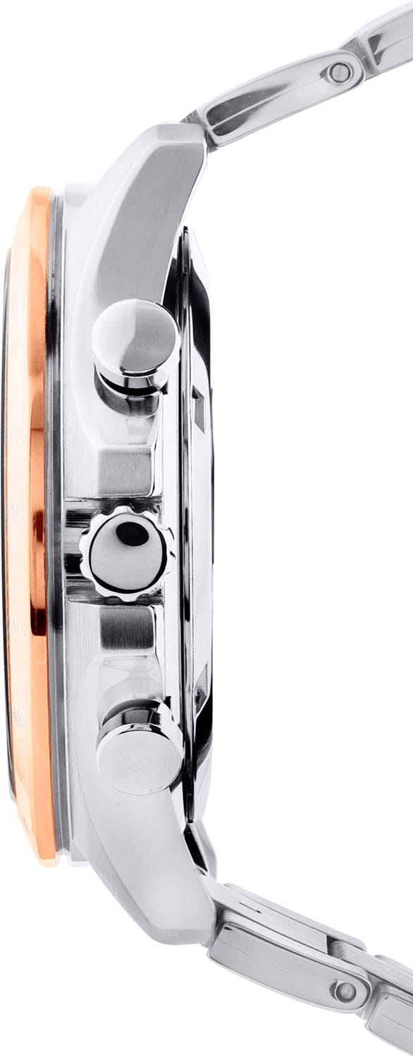 Мужские японские часы-хронографХронографФункция позволяет измерять отрезки времени с особой точностью: часы, минуты, секунды. Верным признаком хронографа является наличие на циферблате 3 дополнительных окошек-счётчиков. с секундомеромСекундомерСекундоме́р — прибор, способный измерять интервалы времени с точностью до долей секунды. Seiko Spirit Chronograph SBTR026 — это великолепное сочетание стиля и функциональности, созданное для современных искателей приключений. Минеральное стеклоМинеральное стеклоМинеральное стекло представляет собой искусственно выращенный минерал кварца. Такое стекло отличается особой устойчивостью к повреждениям и царапинам. Уступает по некоторым качествам сапфировому стеклу. с повышенной прочности Hardlex гарантирует защиту циферблата от царапин, сохраняя их безупречный вид на протяжении долгого времени. Внутри этих часов установлен кварцевый механизм, который обеспечивает высокую точность и надежность, позволяя вам всегда оставаться в курсе времени. Класс водозащиты в 100 метров позволяет вам не только плавать и нырять, но и заниматься разнообразными водными видами спорта, уверенно полагаясь на это надежное устройство, которое выдержит даже самые экстремальные условия. Корпус и браслет часов изготовлены из прочной нержавеющей стали, что укрепляет их долговечность и подчеркивает современный дизайн. Неподвижный безельБезельВнешний ободок, закрепляющий стекло. В спортивных часах так называется поворотное кольцо с делениями на циферблате, выполняет роль таймера – замеряет отрезки времени на шкале. Неподвижный безель – элемент декора. Однонаправленно вращающийся безель на дайверских часах позволяет фиксировать моменты погружения и выныривания на поверхность. с PVD-покрытиемPVDУльтратонкое покрытие наносится в технике вакуумного напыления, сочетает в себе нитрид титана особой прочности со слоем золота или оксида хрома. Несёт в себе декоративную или защитную функцию. цвета розового золота, диаметр 42 мм. Шкала тахиметраТахиметрРазмеченная шкала, располагается на ободке или безеле часов. Тахиметр позволяет рассчитать скорость на определённом участке пути, расстояние измеряется в километрах или милях. по внешнему краю. Удобное окошко даты в позиции между 4 и 5 часов, делает эти часы еще более практичными, позволяя быстро сверять текущую дату. Кроме того, стрелки и метки часов оснащены люминесцентным покрытиемЛюминесцентное покрытиеПозволяет считывать показания времени в темноте. Производители наносят на стрелки, часовые индексы, безель или поверхность циферблата светонакопительный состав, дающий холодное свечение., что обеспечивает отличную видимость даже в условиях низкой освещенности, поэтому вы всегда сможете узнать время, независимо от окружающей среды. Стальной браслет на раскладной застёжкеРаскладная застёжкаТакой тип застёжки используется только на браслетах из металла. Она никогда не раскрывается полностью, происходит разделение на 2 и более частей. Раскладывающая застёжка снизит вероятность потери часов к минимуму. обеспечивает комфорт и удобство в использовании, добавляя завершающий штрих к этому стильному и высокоэффективному аксессуару.