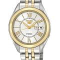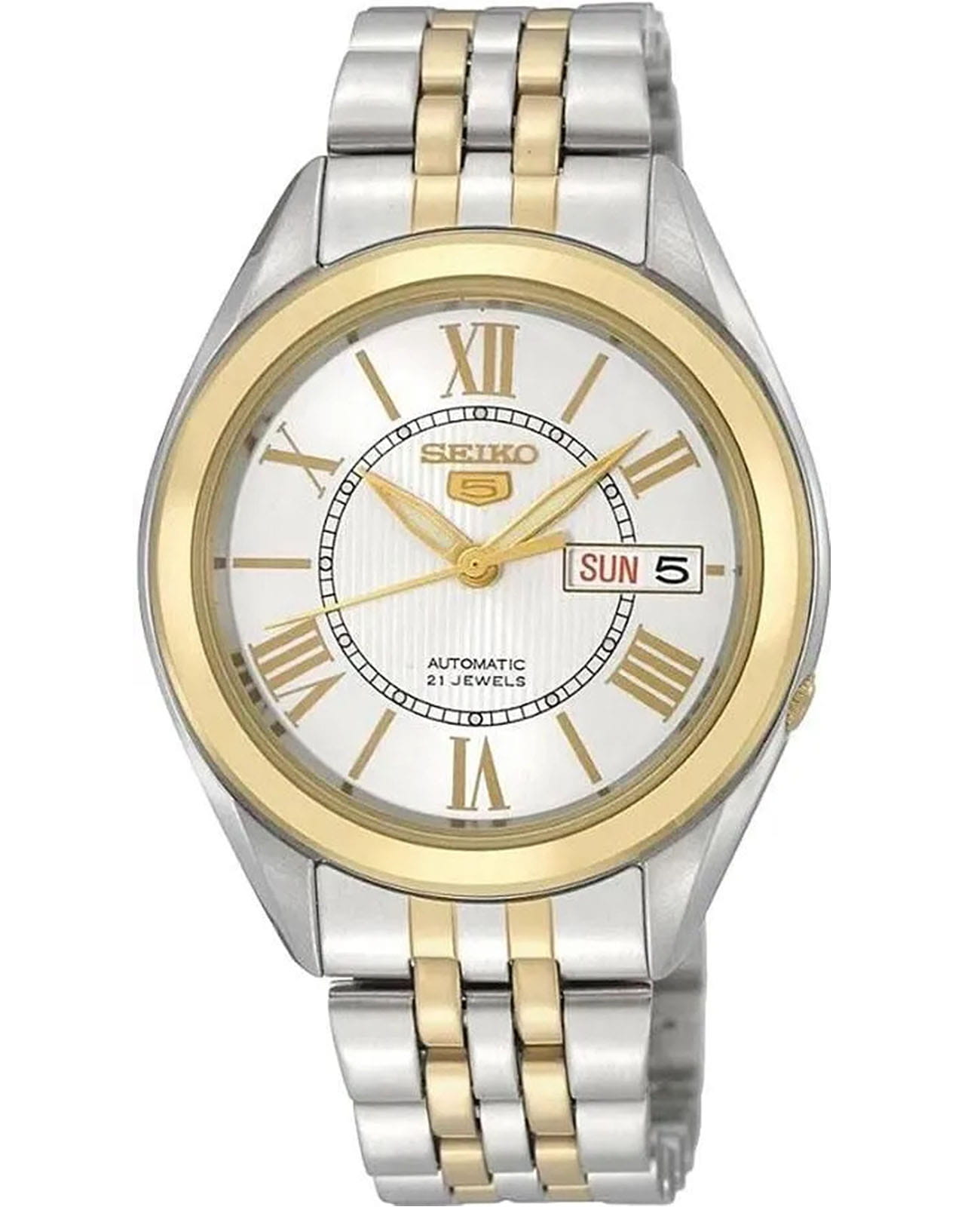 Мужские японские часы Seiko 5 Regular SNKL36J1 c механическим механизмом с автоподзаводом. Минеральное стеклоМинеральное стеклоМинеральное стекло представляет собой искусственно выращенный минерал кварца. Такое стекло отличается особой устойчивостью к повреждениям и царапинам. Уступает по некоторым качествам сапфировому стеклу. с повышенной прочностью устойчивое к появлению царапин, обладающее высокой прозрачностью. Водозащита до 3 ATM позволяет не снимать часы при дожде, мытье рук или случайных брызгах. Корпус шириной 38 мм и браслет изготовлены из стали с PVDPVDУльтратонкое покрытие наносится в технике вакуумного напыления, сочетает в себе нитрид титана особой прочности со слоем золота или оксида хрома. Несёт в себе декоративную или защитную функцию. покрытием. Ремень с раскладной застёжкойРаскладная застёжкаТакой тип застёжки используется только на браслетах из металла. Она никогда не раскрывается полностью, происходит разделение на 2 и более частей. Раскладывающая застёжка снизит вероятность потери часов к минимуму.. Циферблат белого цвета с метками в виде римских цифр и с календарем. Стрелки с люминесцентным покрытиемЛюминесцентное покрытиеПозволяет считывать показания времени в темноте. Производители наносят на стрелки, часовые индексы, безель или поверхность циферблата светонакопительный состав, дающий холодное свечение.. Seiko — это гармония изящного дизайна и технологичной надёжности, компактный и стильный выбор для повседневной классики.