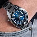Мужские механические часы с автоподзаводом Seiko — это аксессуар из коллекции Prospex, вдохновлённый легендарными дайверскими моделями 1960-х годов. Корпус диаметром 42 мм и толщиной 12,5 мм выполнен из стали. Циферблат синего цвета оформлен метками в виде штрихов и точек. Окошко даты расположено в положении 3 часов. Стрелки и метки с люминесцентным покрытиемЛюминесцентное покрытиеПозволяет считывать показания времени в темноте. Производители наносят на стрелки, часовые индексы, безель или поверхность циферблата светонакопительный состав, дающий холодное свечение. LumiBrite, обеспечивающим высокую читаемость в темноте. Циферблат защищён сапфировым стекломСапфировое стеклоПрочный и надёжный материал из кристалла сапфира синтетического происхождения, характеризующийся особой твёрдостью и устойчивостью к царапинам и повреждениям. с антибликовым покрытиемАнтибликовое покрытиеСлой оксида металла в 0,13-0,3 микрон, благодаря которому стекло часов не бликует и не отражает свет. Антибликовое покрытие уменьшает отражение света в 10 раз, обеспечивая отличную читаемость показателей циферблата. на внутренней поверхности. Механизм — автоматический калибр 6R35 (24 камня, частота 21 600 полуколебаний в час) с возможностью ручного завода и функцией , запас хода до 70 часов. БезельБезельВнешний ободок, закрепляющий стекло. В спортивных часах так называется поворотное кольцо с делениями на циферблате, выполняет роль таймера – замеряет отрезки времени на шкале. Неподвижный безель – элемент декора. Однонаправленно вращающийся безель на дайверских часах позволяет фиксировать моменты погружения и выныривания на поверхность. — однонаправленный, вращающийся с PVD-покрытиемPVDУльтратонкое покрытие наносится в технике вакуумного напыления, сочетает в себе нитрид титана особой прочности со слоем золота или оксида хрома. Несёт в себе декоративную или защитную функцию.. Завинчивающаяся задняя крышка и заводная головка на позиции 4 часов повышают надёжность. Часы оснащены стальным браслетом с раскладной застёжкойРаскладная застёжкаТакой тип застёжки используется только на браслетах из металла. Она никогда не раскрывается полностью, происходит разделение на 2 и более частей. Раскладывающая застёжка снизит вероятность потери часов к минимуму. с системой блокировки. Водонепроницаемость 200 м позволяет использовать часы для профессионального плавания и дайвинга. Идеальный выбор для тех, кто ценит историю, точность и мощный дизайн.