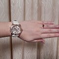 Наручные японские женские часы. Круглый корпус часов выполнен из стали с полным PVD покрытием золотого цвета. Черный фон циферблата и золотые элементы дизайна. Водонепроницаемость  3 ATM.  Минеральное стекло, устойчивое к появлению царапин. Часы прочно удерживаются на руке ремешком из натуральной кожи. Часы украшены кристаллами Swarovski. Современный и роскошный аксессуар. Корпус стальной с PVDPVDУльтратонкое покрытие наносится в технике вакуумного напыления, сочетает в себе нитрид титана особой прочности со слоем золота или оксида хрома. Несёт в себе декоративную или защитную функцию. покрытием цвета желтого золота.