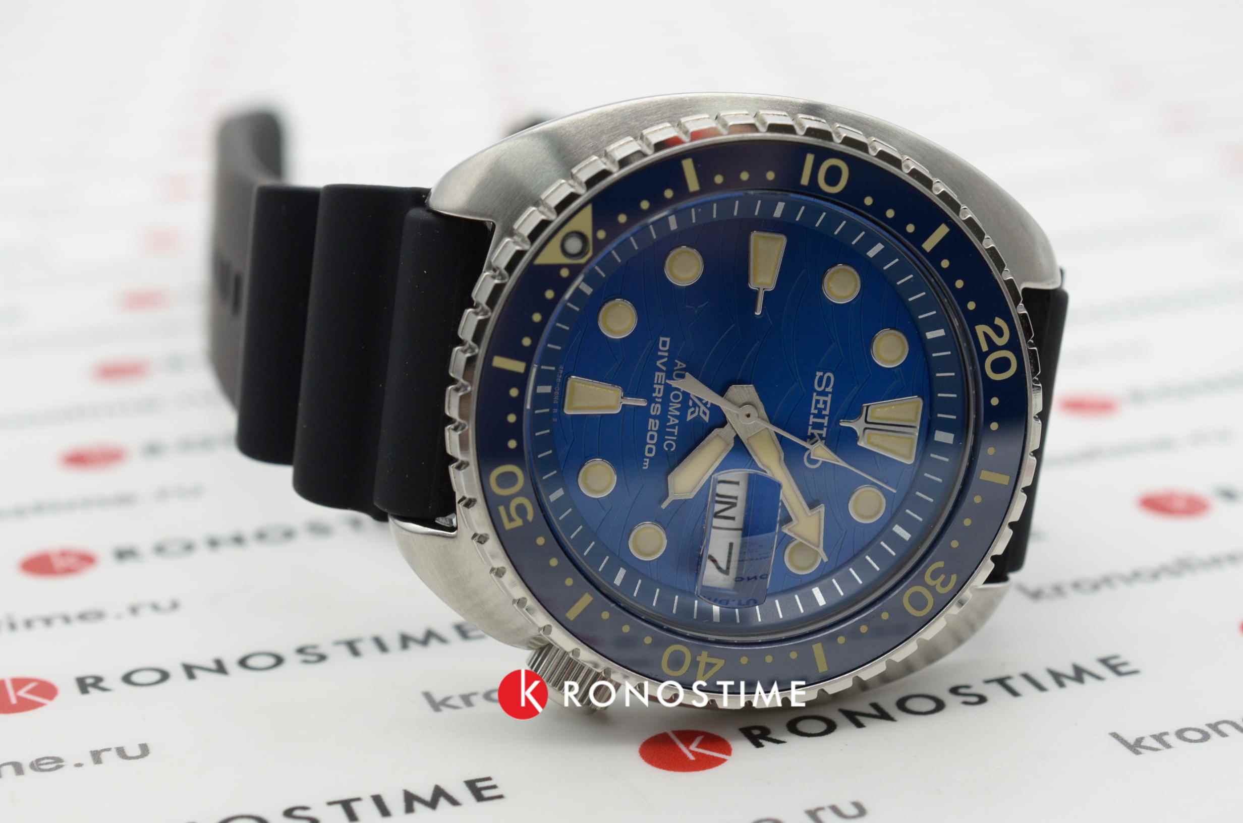 Аксессуар из специальной серии отличается оригинальным дизайном. Чёрный циферблат с узором дополнен метками и стрелками с люминесцентной подсветкойЛюминесцентное покрытиеПозволяет считывать показания времени в темноте. Производители наносят на стрелки, часовые индексы, безель или поверхность циферблата светонакопительный состав, дающий холодное свечение.. Японский автоматический калибр Seiko 4К36 имеет запас хода на 41 час. Корпус выполнен из стали 316L с PVD-покрытиемPVDУльтратонкое покрытие наносится в технике вакуумного напыления, сочетает в себе нитрид титана особой прочности со слоем золота или оксида хрома. Несёт в себе декоративную или защитную функцию.. Рифленая заводная головка защищена, безельБезельВнешний ободок, закрепляющий стекло. В спортивных часах так называется поворотное кольцо с делениями на циферблате, выполняет роль таймера – замеряет отрезки времени на шкале. Неподвижный безель – элемент декора. Однонаправленно вращающийся безель на дайверских часах позволяет фиксировать моменты погружения и выныривания на поверхность. вращается в одном направлении. Индикатор даты отображает число и день недели.