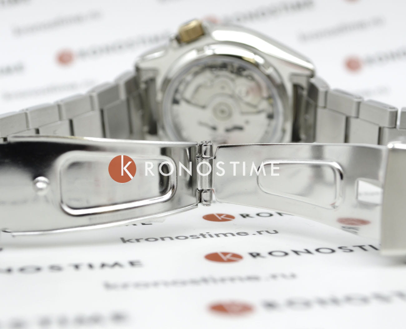 Внутри часов установлен механический калибр 4R36 с автоподзаводом, обеспечивающий точность хода и запас хода до 41 часа. Функция отображения дня недели и даты расположена на отметке 3 часа, что добавляет практичности в повседневном использовании.
