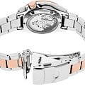 Водозащита 100 метров (10 бар) позволяет использовать часы для плавания и других водных видов спорта. Стальной браслет с частичным PVD-покрытиемPVDУльтратонкое покрытие наносится в технике вакуумного напыления, сочетает в себе нитрид титана особой прочности со слоем золота или оксида хрома. Несёт в себе декоративную или защитную функцию. розового золота и раскладной застёжкойРаскладная застёжкаТакой тип застёжки используется только на браслетах из металла. Она никогда не раскрывается полностью, происходит разделение на 2 и более частей. Раскладывающая застёжка снизит вероятность потери часов к минимуму. обеспечивает комфортное ношение и надёжную фиксацию на запястье.