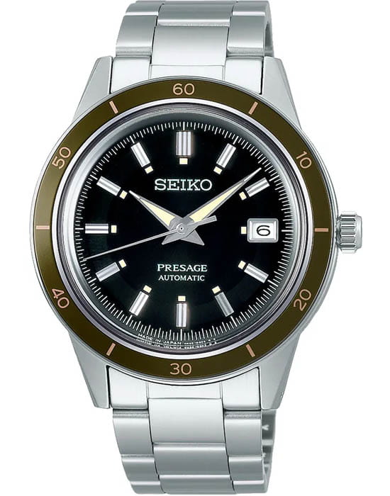 Модель SRPG07J1 из коллекции Seiko Presage Style 60's сочетает винтажный дизайн с современными технологиями. Корпус и браслет выполнены из нержавеющей стали. Надёжный автоматический механизм Seiko 4R35 обеспечивает до 41 часа запаса хода. Циферблат защищён минеральным стекломМинеральное стеклоМинеральное стекло представляет собой искусственно выращенный минерал кварца. Такое стекло отличается особой устойчивостью к повреждениям и царапинам. Уступает по некоторым качествам сапфировому стеклу.. Безель с PVD-покрытиемPVDУльтратонкое покрытие наносится в технике вакуумного напыления, сочетает в себе нитрид титана особой прочности со слоем золота или оксида хрома. Несёт в себе декоративную или защитную функцию. из нержавеющей стали придаёт модели элегантный вид. Установлена раскладная застёжкаРаскладная застёжкаТакой тип застёжки используется только на браслетах из металла. Она никогда не раскрывается полностью, происходит разделение на 2 и более частей. Раскладывающая застёжка снизит вероятность потери часов к минимуму. для надёжной фиксации на запястье.