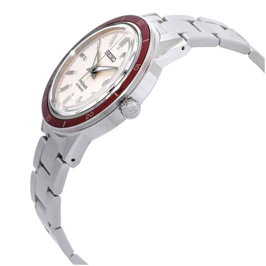 Мужские наручные часы Seiko SRPH93J1 из коллекции Presage Style 60s сочетают в себе классический дизайн и надежность современных технологий. Модель обладает круглым корпусом диаметром 40,8 мм, изготовленным из нержавеющей стали, что обеспечивает высокую устойчивость к внешним воздействиям . Толщина корпуса составляет 12 мм, а для защиты используется минеральное стеклоМинеральное стеклоМинеральное стекло представляет собой искусственно выращенный минерал кварца. Такое стекло отличается особой устойчивостью к повреждениям и царапинам. Уступает по некоторым качествам сапфировому стеклу. Hardlex Crystal, обеспечивающее прочную защиту от царапин . БезельБезельВнешний ободок, закрепляющий стекло. В спортивных часах так называется поворотное кольцо с делениями на циферблате, выполняет роль таймера – замеряет отрезки времени на шкале. Неподвижный безель – элемент декора. Однонаправленно вращающийся безель на дайверских часах позволяет фиксировать моменты погружения и выныривания на поверхность. с PVD-покрытиемPVDУльтратонкое покрытие наносится в технике вакуумного напыления, сочетает в себе нитрид титана особой прочности со слоем золота или оксида хрома. Несёт в себе декоративную или защитную функцию.. Браслет также выполнен из нержавеющей стали с раскладной застежкойРаскладная застёжкаТакой тип застёжки используется только на браслетах из металла. Она никогда не раскрывается полностью, происходит разделение на 2 и более частей. Раскладывающая застёжка снизит вероятность потери часов к минимуму., гарантирующей комфортное ношение . Циферблат бежевого цвета украшен текстурой, которая подчеркивает элегантный стиль модели. Часы оснащены функцией отображения даты на позиции «3 часа» . Модель работает на автоматическом механизме с калибром 4R35, который включает 23 камня и обладает запасом хода до 41 часа . Водонепроницаемость составляет WR 50, что позволяет защитить корпус от случайных брызг и кратковременного контакта с водой . Вдохновленные культурой 1960-х годов, эти часы демонстрируют уникальный стиль и внимание к деталям, сохраняя при этом практичность для повседневного использования.