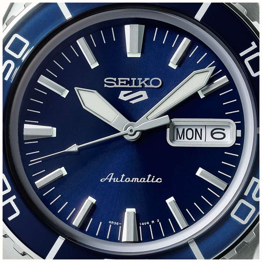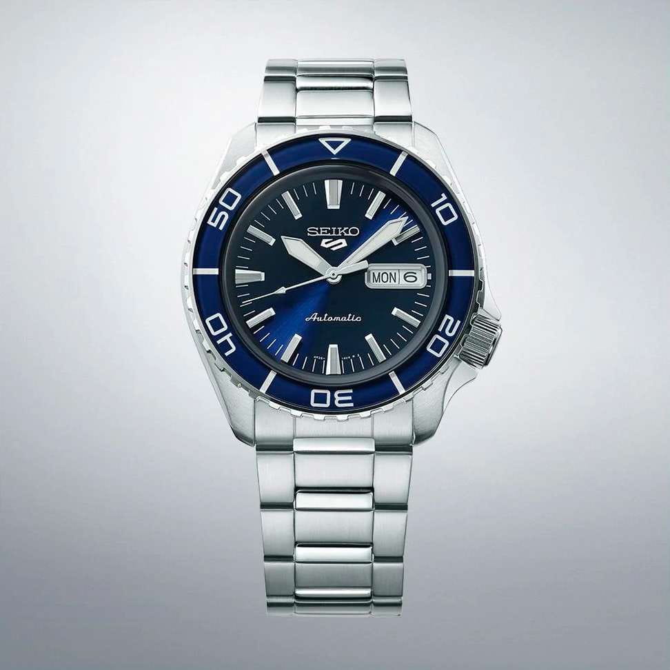 Мужские наручные часы Seiko SRPK97K1 из коллекции 5 Sports сочетают в себе стильный дизайн и надежность современных технологий. Модель обладает круглым корпусом диаметром 42,5 мм, изготовленным из нержавеющей стали, что обеспечивает высокую устойчивость к внешним воздействиям. БезельБезельВнешний ободок, закрепляющий стекло. В спортивных часах так называется поворотное кольцо с делениями на циферблате, выполняет роль таймера – замеряет отрезки времени на шкале. Неподвижный безель – элемент декора. Однонаправленно вращающийся безель на дайверских часах позволяет фиксировать моменты погружения и выныривания на поверхность. с PVD-покрытиемPVDУльтратонкое покрытие наносится в технике вакуумного напыления, сочетает в себе нитрид титана особой прочности со слоем золота или оксида хрома. Несёт в себе декоративную или защитную функцию.. Для защиты циферблата используется минеральное стеклоМинеральное стеклоМинеральное стекло представляет собой искусственно выращенный минерал кварца. Такое стекло отличается особой устойчивостью к повреждениям и царапинам. Уступает по некоторым качествам сапфировому стеклу., которое эффективно противостоит царапинам и механическим повреждениям. Часы оснащены автоматическим механизмом с калибром 4R36, поддерживающим автоподзавод и имеющим запас хода около 41 часа. Водонепроницаемость модели достигает 10 атмосфер (100 метров), что позволяет использовать их во время плавания и других водных видов спорта. Стальной браслет на раскладной застёжкеРаскладная застёжкаТакой тип застёжки используется только на браслетах из металла. Она никогда не раскрывается полностью, происходит разделение на 2 и более частей. Раскладывающая застёжка снизит вероятность потери часов к минимуму.. Циферблат оснащен функцией индикации даты, центральной секундной стрелкой и люминесцентным покрытиемЛюминесцентное покрытиеПозволяет считывать показания времени в темноте. Производители наносят на стрелки, часовые индексы, безель или поверхность циферблата светонакопительный состав, дающий холодное свечение. стрелок и маркеров для удобства использования в темное время суток.