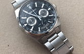 Часы оснащены кварцевым механизмом Seiko калибра 8T63 с точностью ±15 секунд в месяц и функцией хронографа до 60 минут с точностью 1/5 секунды.  Циферблат защищён минеральным стекломМинеральное стеклоМинеральное стекло представляет собой искусственно выращенный минерал кварца. Такое стекло отличается особой устойчивостью к повреждениям и царапинам. Уступает по некоторым качествам сапфировому стеклу. Hardlex, устойчивым к царапинам.  Установлена раскладная застёжкаРаскладная застёжкаТакой тип застёжки используется только на браслетах из металла. Она никогда не раскрывается полностью, происходит разделение на 2 и более частей. Раскладывающая застёжка снизит вероятность потери часов к минимуму. с тройным сгибом и кнопкой освобождения.  Модель обладает водонепроницаемостью до 100 метров, что делает её подходящей для плавания и сноркелинга.