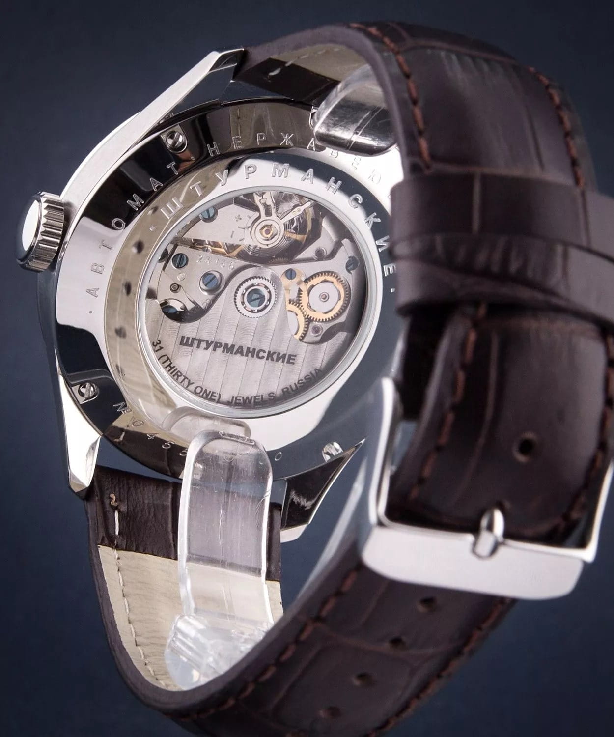 Лимитированные мужские российские механические часы Штурманские Открытый Космос 2416/1861996, механический механизм (автоматический калибр) с высокой точностью. Минеральное стеклоМинеральное стеклоМинеральное стекло представляет собой искусственно выращенный минерал кварца. Такое стекло отличается особой устойчивостью к повреждениям и царапинам. Уступает по некоторым качествам сапфировому стеклу. устойчивое к появлению царапин, обладающее высокой прозрачностью. Класс водозащиты: 100 метров, позволит плавать, нырять и заниматься другими водными видами спорта. Корпус часов изготовлен из стали. Стальной браслет на раскладной застёжкеРаскладная застёжкаТакой тип застёжки используется только на браслетах из металла. Она никогда не раскрывается полностью, происходит разделение на 2 и более частей. Раскладывающая застёжка снизит вероятность потери часов к минимуму.. Стрелки и метки с люминесцентным покрытиемЛюминесцентное покрытиеПозволяет считывать показания времени в темноте. Производители наносят на стрелки, часовые индексы, безель или поверхность циферблата светонакопительный состав, дающий холодное свечение.. Окошко даты находится в положении 3 часа.