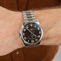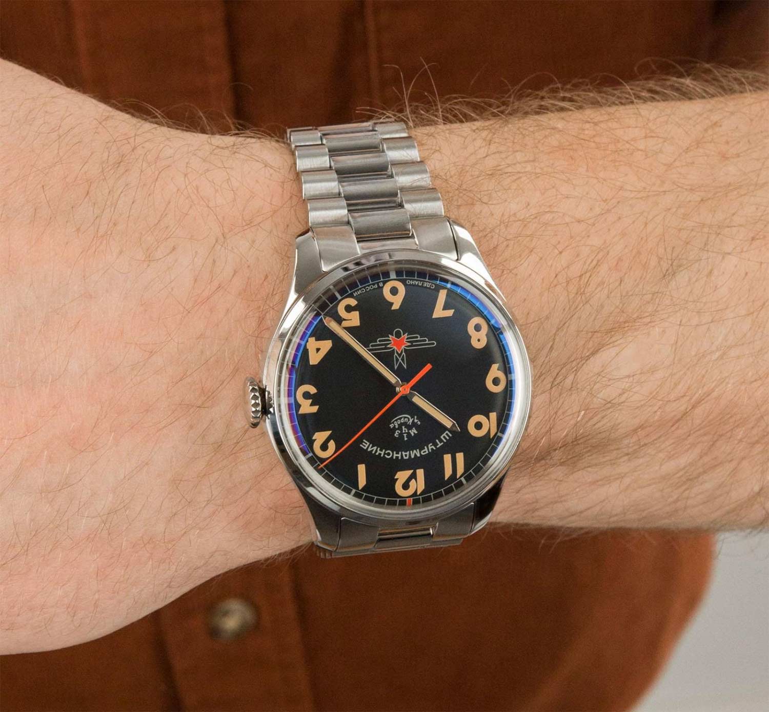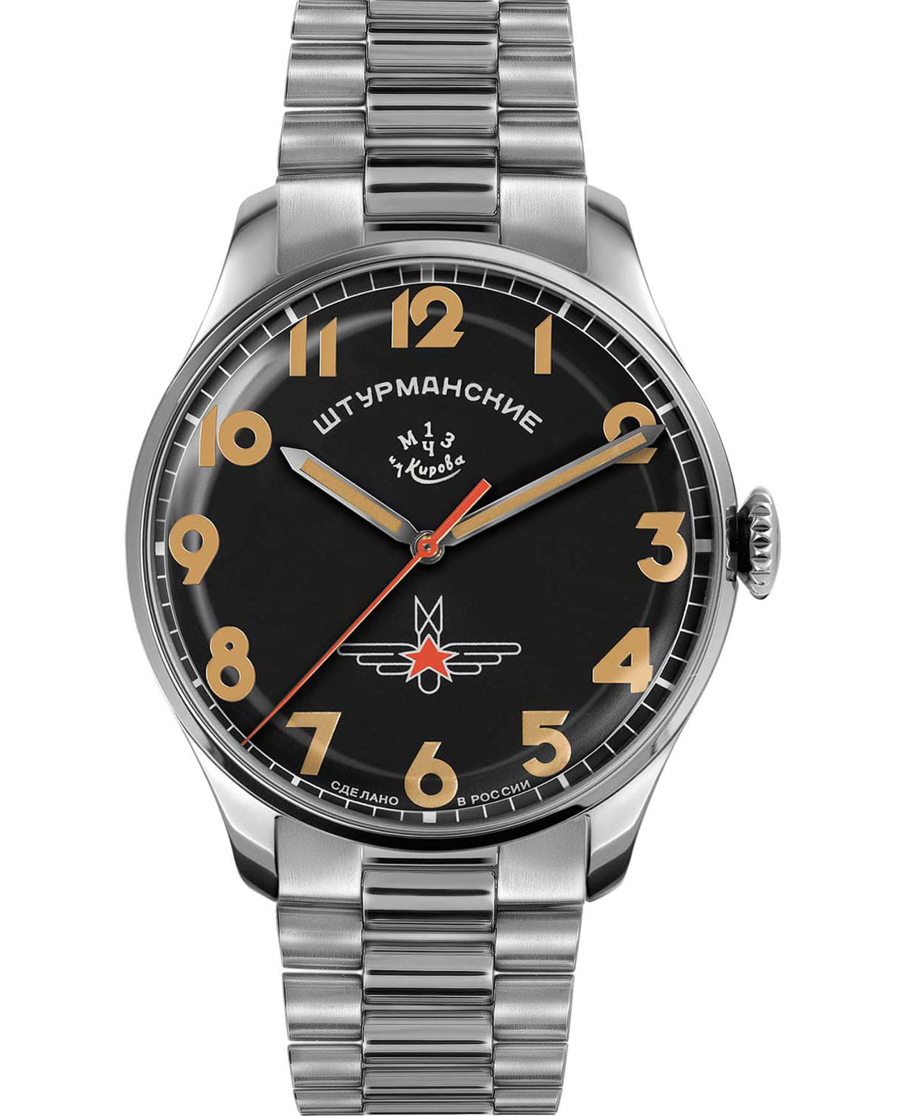 Штурманские мужские российские механические часы 2416/3805147B с механизмом высокой точности. Класс водозащиты: 50 метров, позволит защитить корпус от случайных брызг или капель дождя. Корпус часов изготовлен из стали. Сапфировое стеклоСапфировое стеклоПрочный и надёжный материал из кристалла сапфира синтетического происхождения, характеризующийся особой твёрдостью и устойчивостью к царапинам и повреждениям. устойчивое к мелким механическим повреждениям. Стальной браслет с раскладной застёжкойРаскладная застёжкаТакой тип застёжки используется только на браслетах из металла. Она никогда не раскрывается полностью, происходит разделение на 2 и более частей. Раскладывающая застёжка снизит вероятность потери часов к минимуму.. Стрелки и метки с люминесцентным покрытиемЛюминесцентное покрытиеПозволяет считывать показания времени в темноте. Производители наносят на стрелки, часовые индексы, безель или поверхность циферблата светонакопительный состав, дающий холодное свечение.. Задняя крышка украшена портретом Юрия Гагарина и крепится на 4-х винтах.