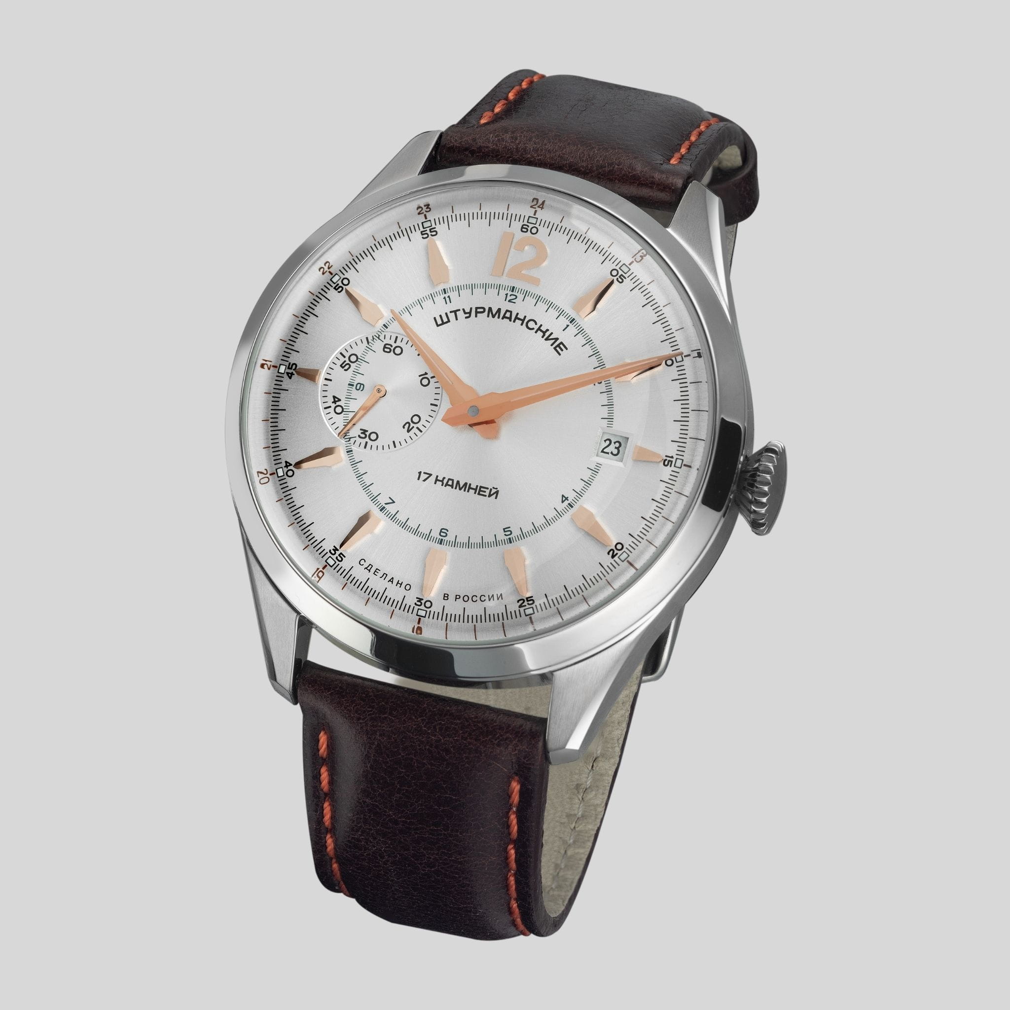 Мужские российские механические часы Штурманские 3105/1881917, механический механизм (автоматический калибр) с высокой точностью. Минеральное стеклоМинеральное стеклоМинеральное стекло представляет собой искусственно выращенный минерал кварца. Такое стекло отличается особой устойчивостью к повреждениям и царапинам. Уступает по некоторым качествам сапфировому стеклу. устойчивое к мелким механическим повреждениям. Класс водозащиты: 50 метров, позволит защитить корпус от случайных брызг или капель дождя. Корпус часов изготовлен из стали. Кожаный ремешок на стандартной застёжке. Чёткая, читаемая минутная шкала уходит за приделы видимой области циферблата, подчёркивая изящность ободка корпуса. Окошко даты находится в положении 3 часов.