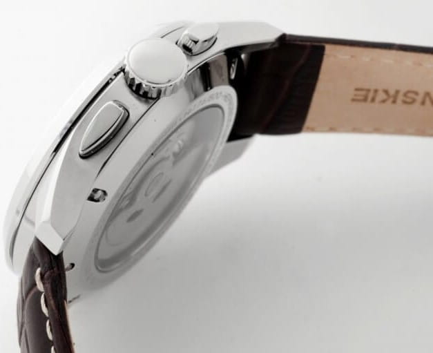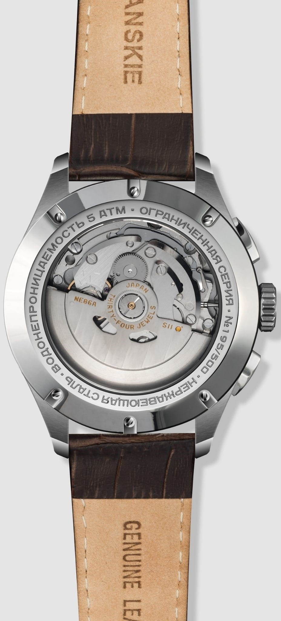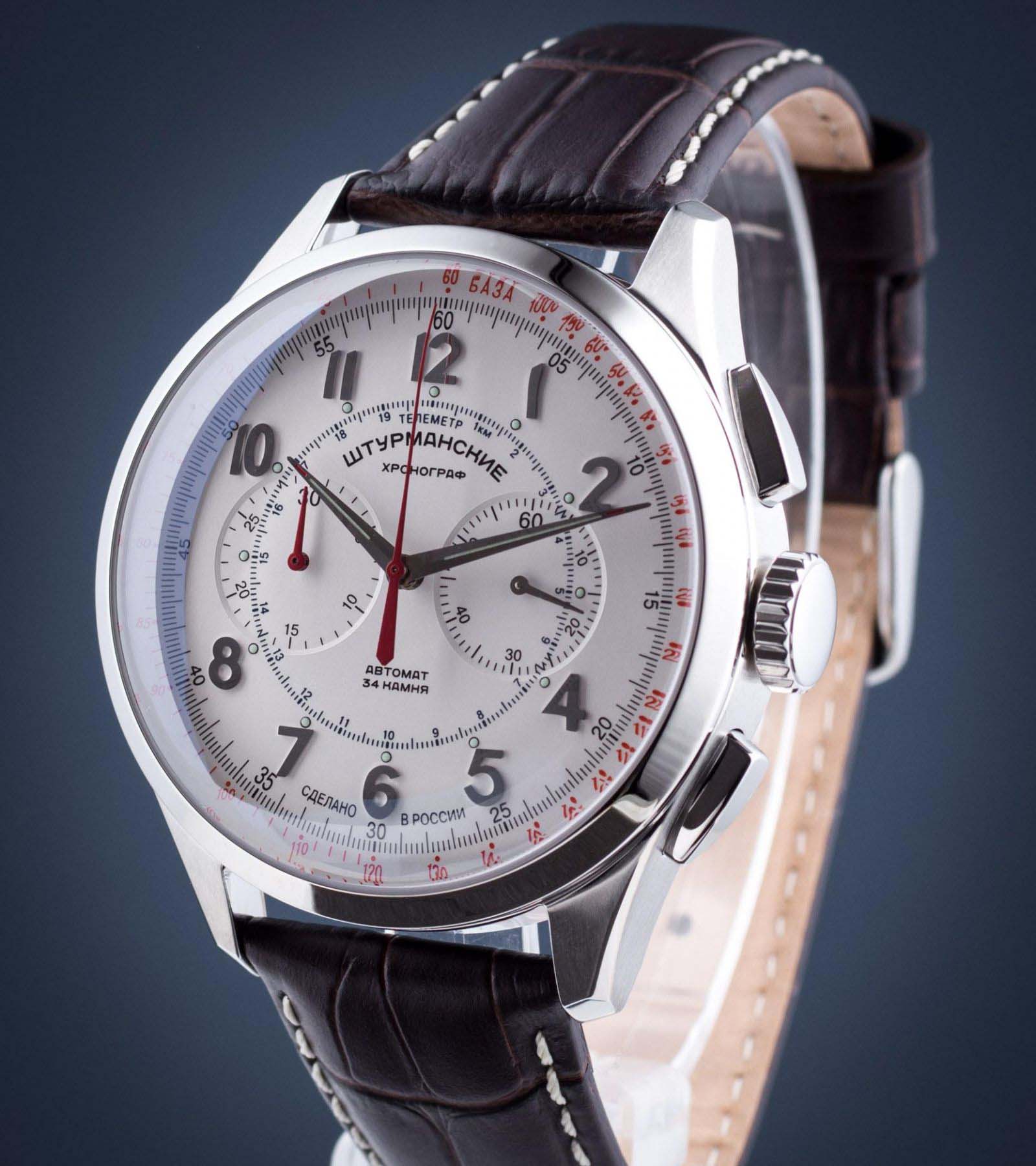 Лимитированные мужские российские механические часы-хронографХронографФункция позволяет измерять отрезки времени с особой точностью: часы, минуты, секунды. Верным признаком хронографа является наличие на циферблате 3 дополнительных окошек-счётчиков. с секундомеромСекундомерСекундоме́р — прибор, способный измерять интервалы времени с точностью до долей секунды. Штурманские Открытый Космос NE86/1855016, механический механизм (автоматический калибр) с высокой точностью. Лимитированная серия - 500 экземпляров, посвящена первому выходу человека в открытый космос. Сапфировое стеклоСапфировое стеклоПрочный и надёжный материал из кристалла сапфира синтетического происхождения, характеризующийся особой твёрдостью и устойчивостью к царапинам и повреждениям. устойчивое к появлению царапин, обладающее высокой прозрачностью. Класс водозащиты: 50 метров, позволит защитить корпус от случайных брызг или капель дождя. Корпус часов изготовлен из стали. Кожаный ремешок на стандартной застёжке. Стрелки и метки с люминесцентным покрытиемЛюминесцентное покрытиеПозволяет считывать показания времени в темноте. Производители наносят на стрелки, часовые индексы, безель или поверхность циферблата светонакопительный состав, дающий холодное свечение.. Стальной корпус надежно защищает от повреждений механический японский калибр Seiko NE86 на 34 камня с запасом хода 42 часа. Подзавод у часов автоматический.