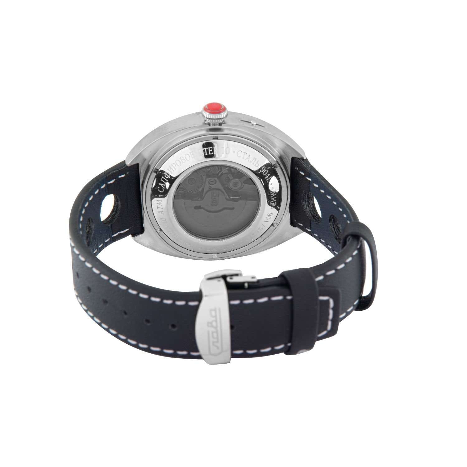 Российские часы Слава Мир 9010574/300-2427 оснащены механизмом Слава 2427, что обеспечивает исключительную надежность и точность хода. Корпус часов выполнен из нержавеющей стали, что придает им долговечность и устойчивость к внешним воздействиям. Сапфировое стеклоСапфировое стеклоПрочный и надёжный материал из кристалла сапфира синтетического происхождения, характеризующийся особой твёрдостью и устойчивостью к царапинам и повреждениям. защищает серебристый циферблат от царапин и повреждений, обеспечивая долговечность и надежность изделия. Эти часы идеально подойдут для повседневного использования, сочетая в себе стиль, надежность и функциональность. Стрелки и метки с люминесцентным покрытиемЛюминесцентное покрытиеПозволяет считывать показания времени в темноте. Производители наносят на стрелки, часовые индексы, безель или поверхность циферблата светонакопительный состав, дающий холодное свечение., что облегчает чтение времени даже в условиях слабого освещения. Окошки дня недели и даты находятся в положении 3 часа. Часы комплектуются кожаным перфорированным ремешком, прошитым белой нитью и оснащенным классической застежкой, обеспечивая комфорт и надежность в носке. Класс водозащиты часов составляет 100 метров, позволит плавать, нырять и заниматься другими водными видами спорта.