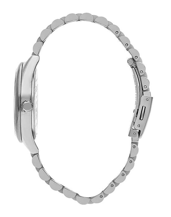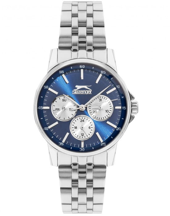 Женские наручные часы Slazenger SL.09.2009.4.03 сочетают в себе элегантный дизайн и практичность современных технологий. Модель обладает круглым корпусом диаметром 36 мм, изготовленным из суперметалла, что обеспечивает высокую устойчивость к внешним воздействиям. Браслет выполнен из того же материала с раскладной застежкойРаскладная застёжкаТакой тип застёжки используется только на браслетах из металла. Она никогда не раскрывается полностью, происходит разделение на 2 и более частей. Раскладывающая застёжка снизит вероятность потери часов к минимуму., гарантирующей комфортное ношение. Циферблат оснащен индексами для лучшей читаемости времени и дополнен функцией отображения даты, а также дня недели на малых циферблатах. Для защиты применяется минеральное стеклоМинеральное стеклоМинеральное стекло представляет собой искусственно выращенный минерал кварца. Такое стекло отличается особой устойчивостью к повреждениям и царапинам. Уступает по некоторым качествам сапфировому стеклу., обеспечивающее прочную защиту от царапин. Часы работают на японском кварцевом механизме, который питается от батарейки и гарантирует точное время без необходимости подзаводки. Водонепроницаемость составляет 3 атмосферы (30 метров), что позволяет использовать их в повседневной жизни, но не рекомендуется для плавания или занятий водными видами спорта.