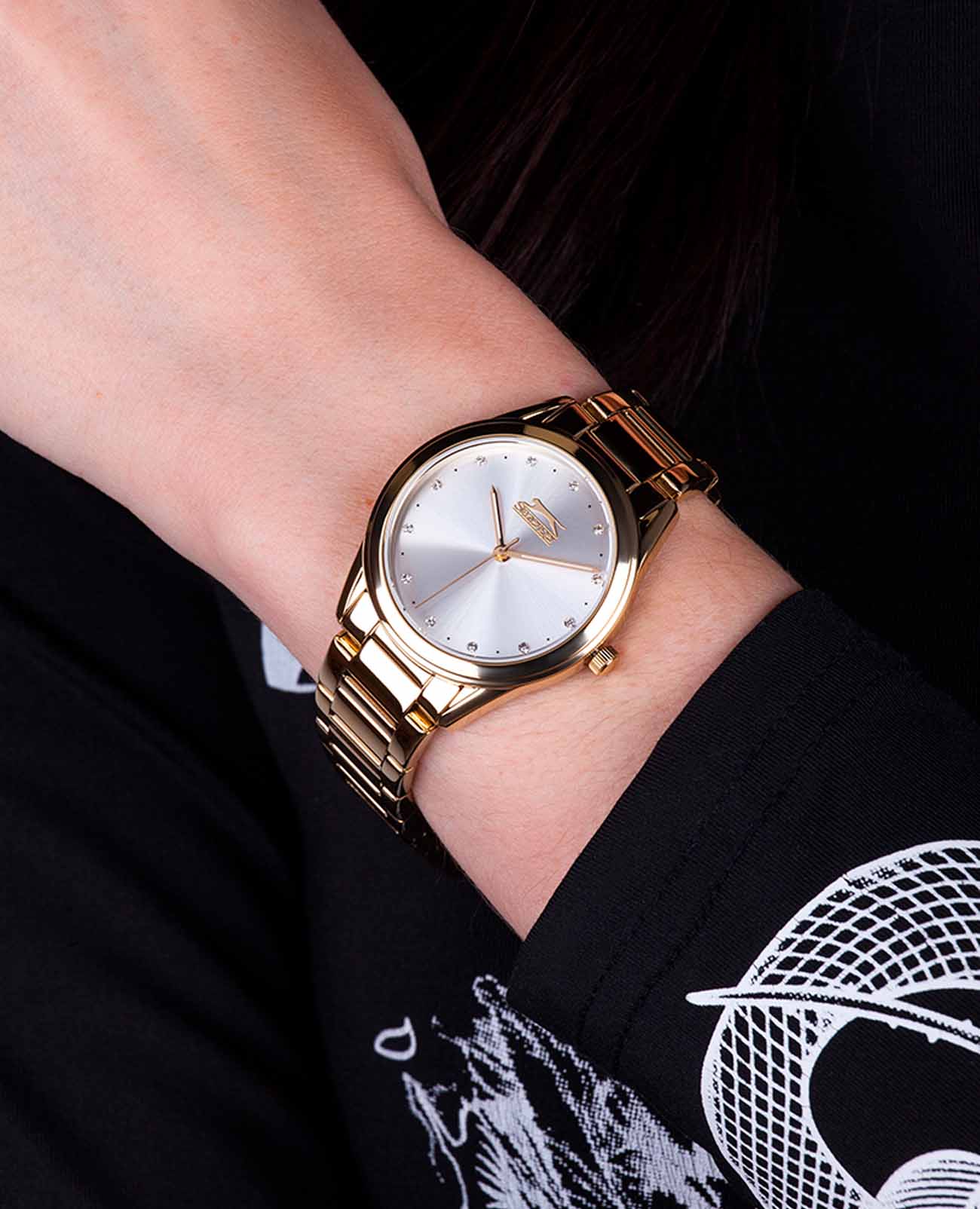 Женские наручные часы Slazenger SL.09.2013.3.03 сочетают в себе элегантность и практичность, представлены в классическом дизайне с круглым корпусом диаметром 35 мм, изготовленным из нержавеющей стали с IP-покрытиемIP-покрытиеМетод ионного напыления. Демонстрирует повышенную устойчивость к истиранию, окислению и химическим веществам. Под воздействием высокого давления и температуры около 1500°C молекулы металла надёжно соединяются с частицами корпуса часов., что обеспечивает привлекательный внешний вид и устойчивость к воздействиям окружающей среды. Циферблат серебристого цвета украшен кристаллами, добавляя модели особую роскошь и шарм. Для защиты циферблата используется минеральное стеклоМинеральное стеклоМинеральное стекло представляет собой искусственно выращенный минерал кварца. Такое стекло отличается особой устойчивостью к повреждениям и царапинам. Уступает по некоторым качествам сапфировому стеклу., обеспечивающее надежную защиту от царапин. Часы комплектуются металлическим браслетом с раскладной застежкойРаскладной замокДанный вариант застежки используется только на часах с металлическим браслетом. Отличительная особенность такого крепления в том, что длина браслета становится универсальной и вы можете самостоятельно отрегулировать нужный вам размер – застежка просто двигается по браслету часов., гарантирующей комфортное ношение. Модель работает на кварцевом механизме, что обеспечивает высокую точность хода времени. Водонепроницаемость часов составляет 3 атмосферы (30 метров), подходящую для ежедневного использования, но не рекомендуется для плавания или дайвинга.