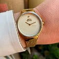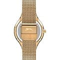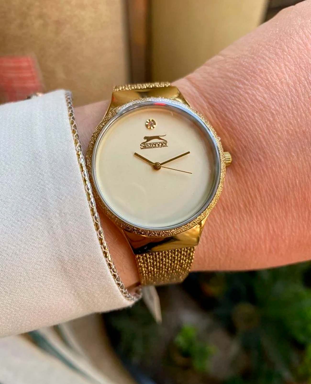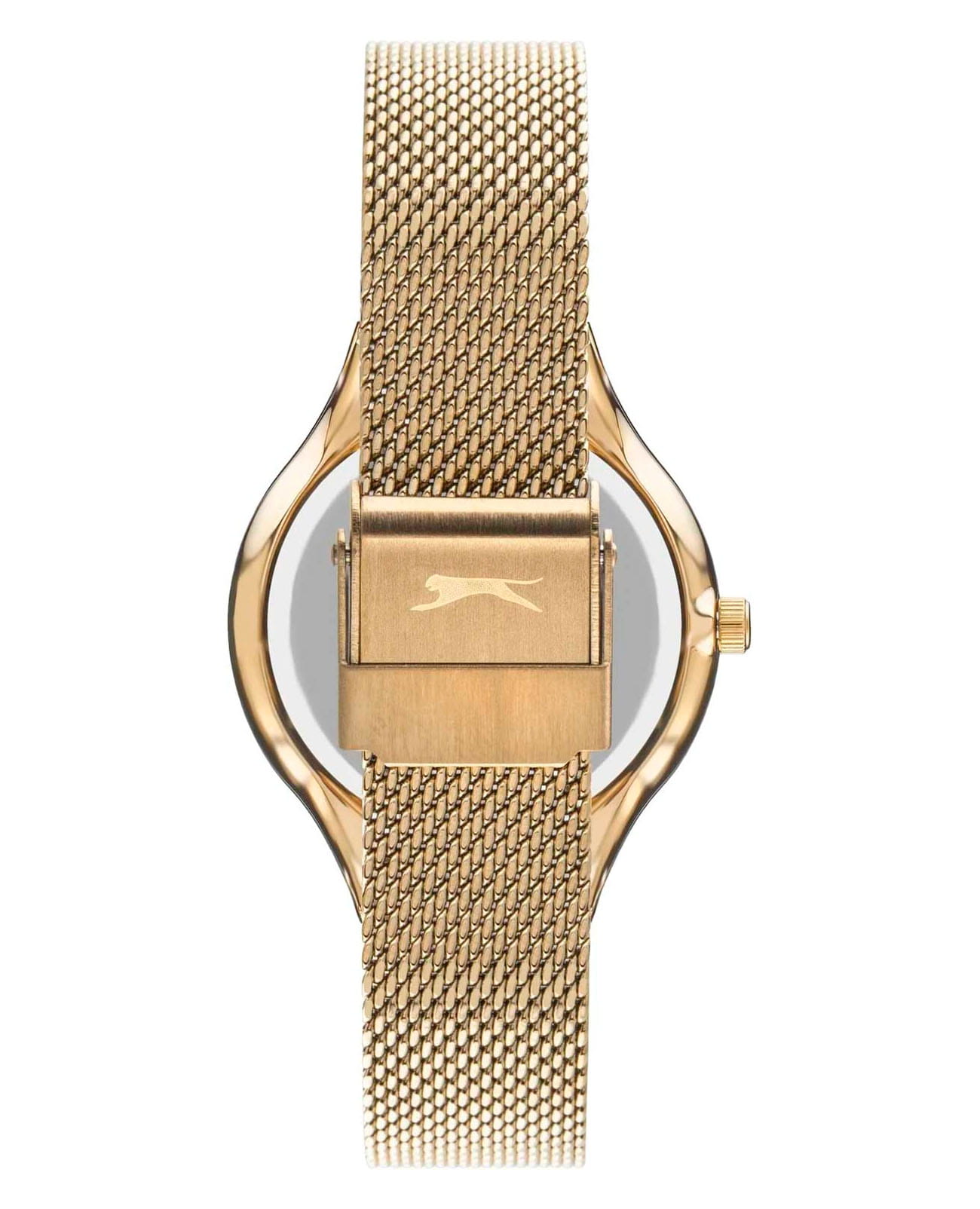 Женские наручные часы Slazenger SL.09.2015.3.03  сочетают в себе элегантный дизайн и надежность современных технологий. Модель обладает круглым корпусом диаметром 35 мм, изготовленным из суперметалла с IP-покрытиемIP-покрытиеМетод ионного напыления. Демонстрирует повышенную устойчивость к истиранию, окислению и химическим веществам. Под воздействием высокого давления и температуры около 1500°C молекулы металла надёжно соединяются с частицами корпуса часов., что обеспечивает высокую устойчивость к внешним воздействиям. Браслет выполнен в виде миланского плетения из того же материала с раскладным замкомРаскладной замокДанный вариант застежки используется только на часах с металлическим браслетом. Отличительная особенность такого крепления в том, что длина браслета становится универсальной и вы можете самостоятельно отрегулировать нужный вам размер – застежка просто двигается по браслету часов., гарантируя комфортное ношение и стильный внешний вид. Циферблат украшен индексами и кристаллами, а также оснащен тремя стрелками для показания часов, минут и секунд. Для защиты применяется минеральное стеклоМинеральное стеклоМинеральное стекло представляет собой искусственно выращенный минерал кварца. Такое стекло отличается особой устойчивостью к повреждениям и царапинам. Уступает по некоторым качествам сапфировому стеклу., обеспечивающее прочную защиту от царапин. Часы работают на японском кварцевом механизме, что гарантирует точное время без необходимости подзаводки. Водонепроницаемость часов достигает 5 атмосфер (50 метров), что позволяет использовать их при контакте с водой, например, во время мытья рук или попадания брызг, однако не рекомендуется для плавания.