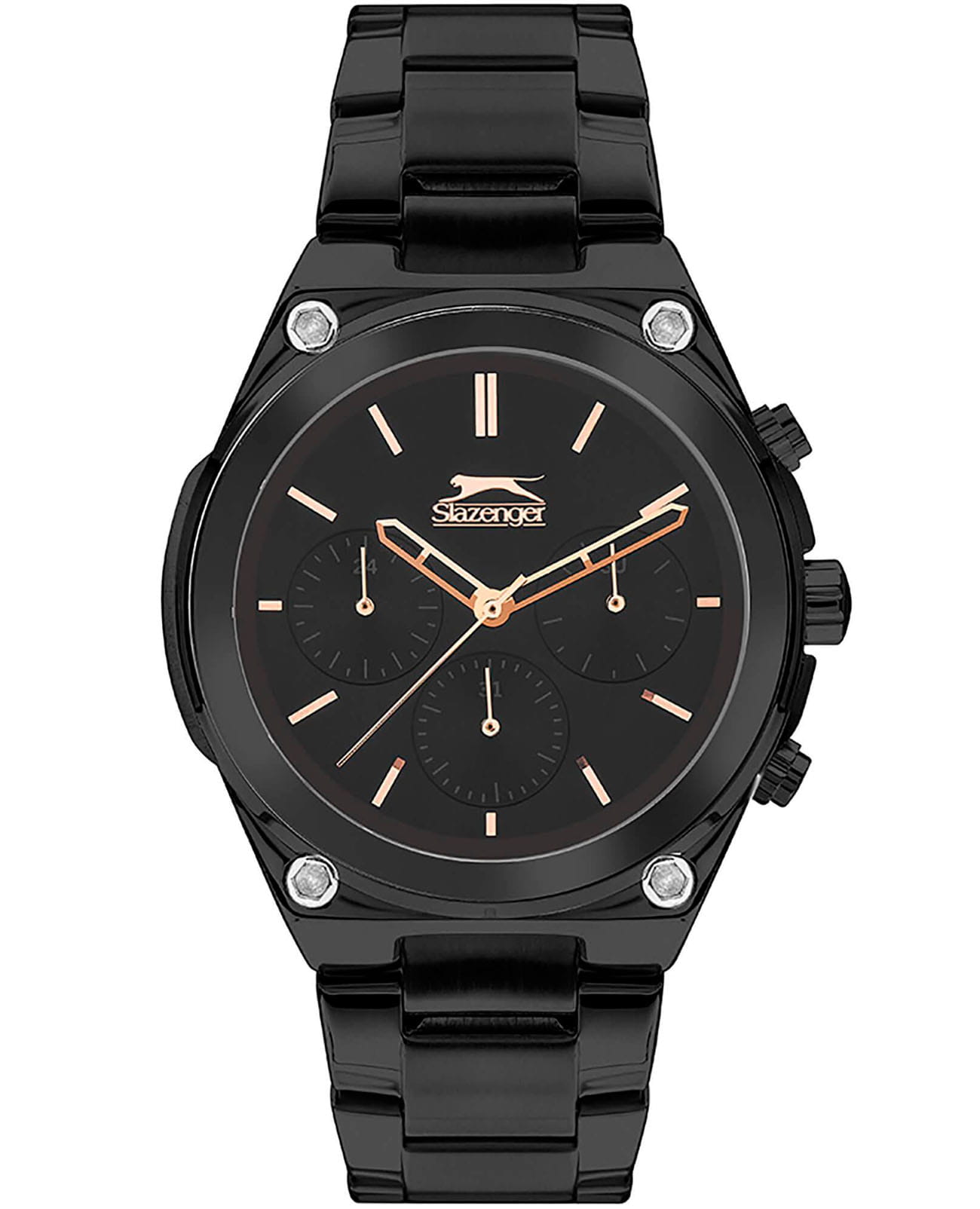 Мужские наручные часы Slazenger SL.09.2027.2.02 сочетают в себе классический дизайн и надежность современных технологий. Модель обладает круглым корпусом диаметром 45 мм, изготовленным из суперметалла с IP-покрытиемIP-покрытиеМетод ионного напыления. Демонстрирует повышенную устойчивость к истиранию, окислению и химическим веществам. Под воздействием высокого давления и температуры около 1500°C молекулы металла надёжно соединяются с частицами корпуса часов., что обеспечивает высокую устойчивость к внешним воздействиям. Браслет выполнен из того же материала с раскладной застежкойРаскладной замокДанный вариант застежки используется только на часах с металлическим браслетом. Отличительная особенность такого крепления в том, что длина браслета становится универсальной и вы можете самостоятельно отрегулировать нужный вам размер – застежка просто двигается по браслету часов., гарантирующей комфортное ношение и безопасность. Чёрный циферблат оснащен тремя стрелками для показания часов, минут и секунд. Для защиты применяется минеральное стеклоМинеральное стеклоМинеральное стекло представляет собой искусственно выращенный минерал кварца. Такое стекло отличается особой устойчивостью к повреждениям и царапинам. Уступает по некоторым качествам сапфировому стеклу., устойчивое к царапинам. Часы работают на кварцевом механизме, что гарантирует точное время без необходимости подзаводки. Водонепроницаемость часов достигает 5 атмосфер (50 метров), что позволяет использовать их при контакте с водой, например, во время мытья рук или попадания брызг, однако не рекомендуется для плавания. Вес часов составляет 145 грамм, делая их удобными для ежедневного использования.