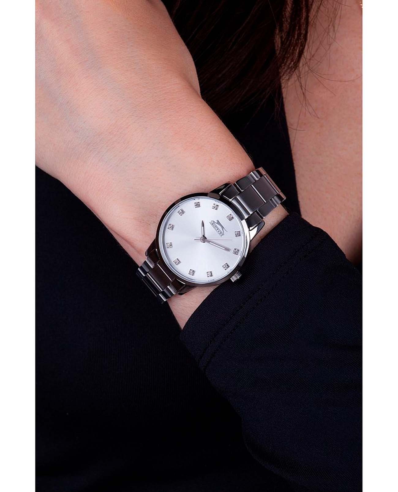 Женские наручные часы Slazenger SL.09.2071.3.01 сочетают в себе элегантный дизайн и надежность современных технологий. Модель обладает круглым корпусом диаметром 32 мм, изготовленным из суперметалла, что обеспечивает высокую устойчивость к внешним воздействиям. Браслет выполнен из стали с раскладной застежкойРаскладной замокДанный вариант застежки используется только на часах с металлическим браслетом. Отличительная особенность такого крепления в том, что длина браслета становится универсальной и вы можете самостоятельно отрегулировать нужный вам размер – застежка просто двигается по браслету часов., гарантирующей комфортное ношение и безопасность. Белый циферблат украшен кристаллами, добавляя модели особую изысканность. Для защиты используется минеральное стеклоМинеральное стеклоМинеральное стекло представляет собой искусственно выращенный минерал кварца. Такое стекло отличается особой устойчивостью к повреждениям и царапинам. Уступает по некоторым качествам сапфировому стеклу., обеспечивающее прочную защиту от царапин. Часы работают на японском кварцевом механизме, что гарантирует точное время без необходимости подзаводки. Водонепроницаемость часов достигает 3 атмосфер (30 метров), что позволяет использовать их при контакте с брызгами воды, однако не рекомендуется для плавания или дайвинга.