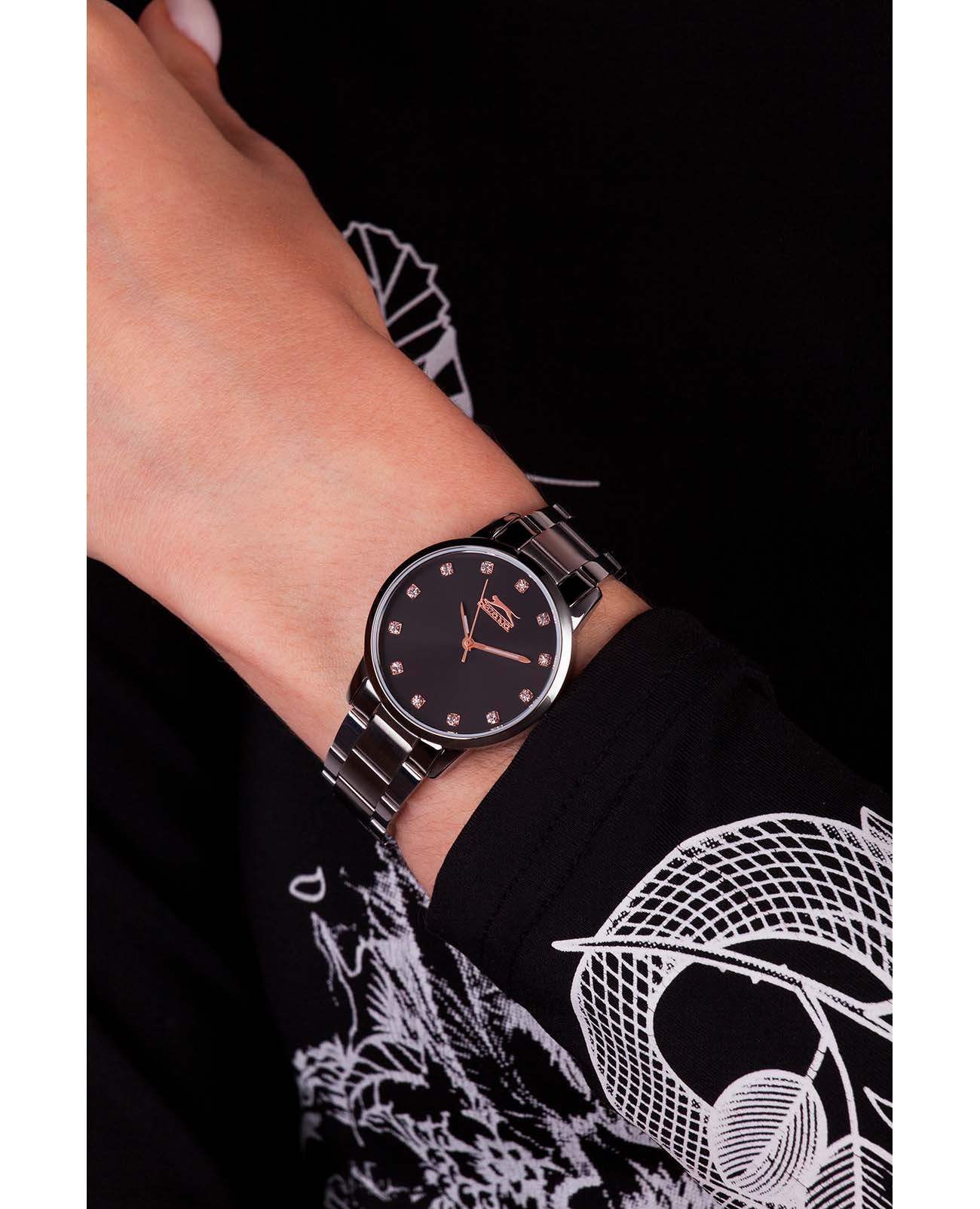 Женские наручные часы Slazenger SL.09.2071.3.04 сочетают в себе элегантный дизайн и практичность современных технологий. Модель обладает круглым корпусом диаметром 32 мм, изготовленным из суперметалла, что обеспечивает высокую устойчивость к внешним воздействиям. Браслет выполнен из суперметалла с раскладной застежкойРаскладной замокДанный вариант застежки используется только на часах с металлическим браслетом. Отличительная особенность такого крепления в том, что длина браслета становится универсальной и вы можете самостоятельно отрегулировать нужный вам размер – застежка просто двигается по браслету часов., гарантирующей комфортное ношение и безопасность. Циферблат белого цвета украшен кристаллами, добавляя модели особую изысканность. Для защиты используется минеральное стеклоМинеральное стеклоМинеральное стекло представляет собой искусственно выращенный минерал кварца. Такое стекло отличается особой устойчивостью к повреждениям и царапинам. Уступает по некоторым качествам сапфировому стеклу., обеспечивающее прочную защиту от царапин [[2]]. Часы работают на японском кварцевом механизме, что гарантирует точное время без необходимости подзаводки. Водонепроницаемость часов достигает 3 атмосфер (30 метров), что позволяет использовать их при контакте с брызгами воды, однако не рекомендуется для плавания или дайвинга.