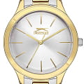 Часы Slazenger SL.09.2101.3.05 станут элегантным дополнением вашего образа. Изящный серебристый циферблат заключен в серебристый корпус диаметром 36 мм, выполненный из прочного суперметалла и безельБезельВнешний ободок, закрепляющий стекло. В спортивных часах так называется поворотное кольцо с делениями на циферблате, выполняет роль таймера – замеряет отрезки времени на шкале. Неподвижный безель – элемент декора. Однонаправленно вращающийся безель на дайверских часах позволяет фиксировать моменты погружения и выныривания на поверхность. цвета желтого золота из суперметалла с IP-покрытиемIP-покрытиеМетод ионного напыления. Демонстрирует повышенную устойчивость к истиранию, окислению и химическим веществам. Под воздействием высокого давления и температуры около 1500°C молекулы металла надёжно соединяются с частицами корпуса часов.. Эти женские часы оснащены надежным кварцевым механизмом и защищены от воды на уровне 3 АТМ, что делает их подходящими для повседневного использования. Серебристый браслет из суперметалла с частичным IP-покрытиемIP-покрытиеМетод ионного напыления. Демонстрирует повышенную устойчивость к истиранию, окислению и химическим веществам. Под воздействием высокого давления и температуры около 1500°C молекулы металла надёжно соединяются с частицами корпуса часов. цвета желтого золота и с раскладной застёжкойРаскладная застёжкаТакой тип застёжки используется только на браслетах из металла. Она никогда не раскрывается полностью, происходит разделение на 2 и более частей. Раскладывающая застёжка снизит вероятность потери часов к минимуму. обеспечивает комфортное прилегание на запястье. Минеральное стеклоМинеральное стеклоМинеральное стекло представляет собой искусственно выращенный минерал кварца. Такое стекло отличается особой устойчивостью к повреждениям и царапинам. Уступает по некоторым качествам сапфировому стеклу. гарантирует защиту от царапин.